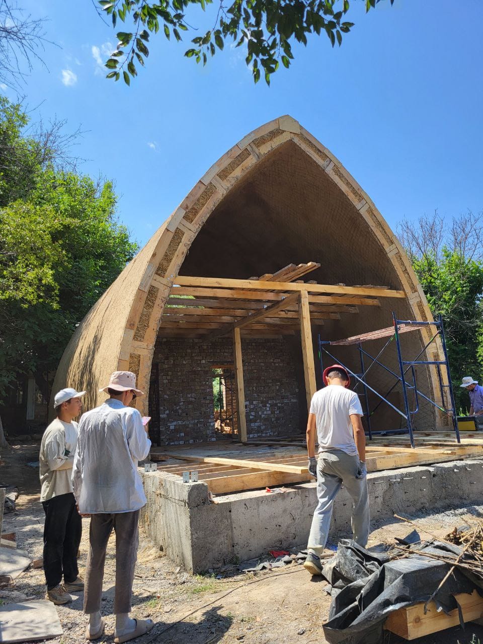 – Все материалы – местные и возобновляемые: глина, дерево, камыш, шерсть, опилки. Строительство максимально ручное, без тяжелой техники.