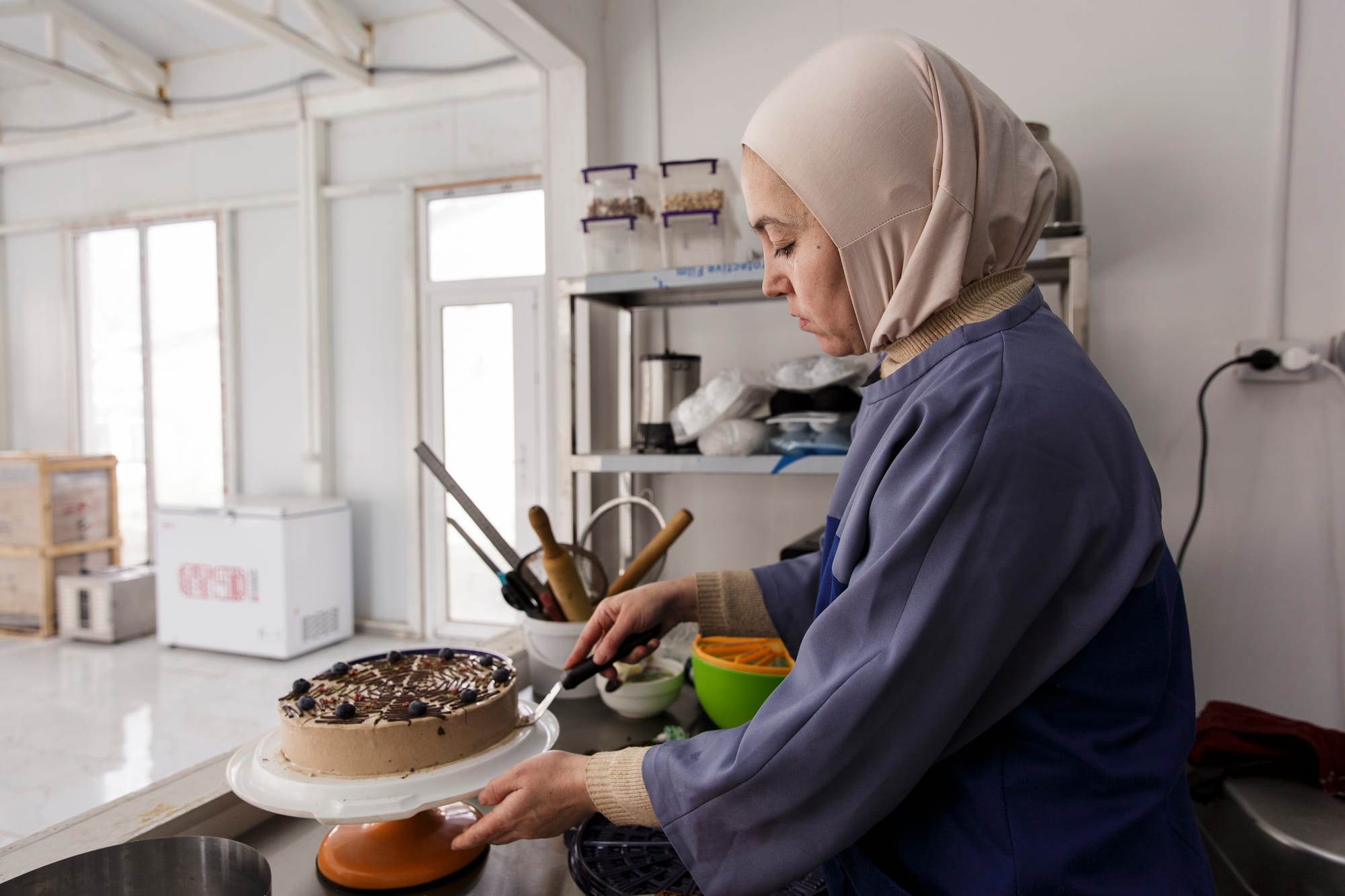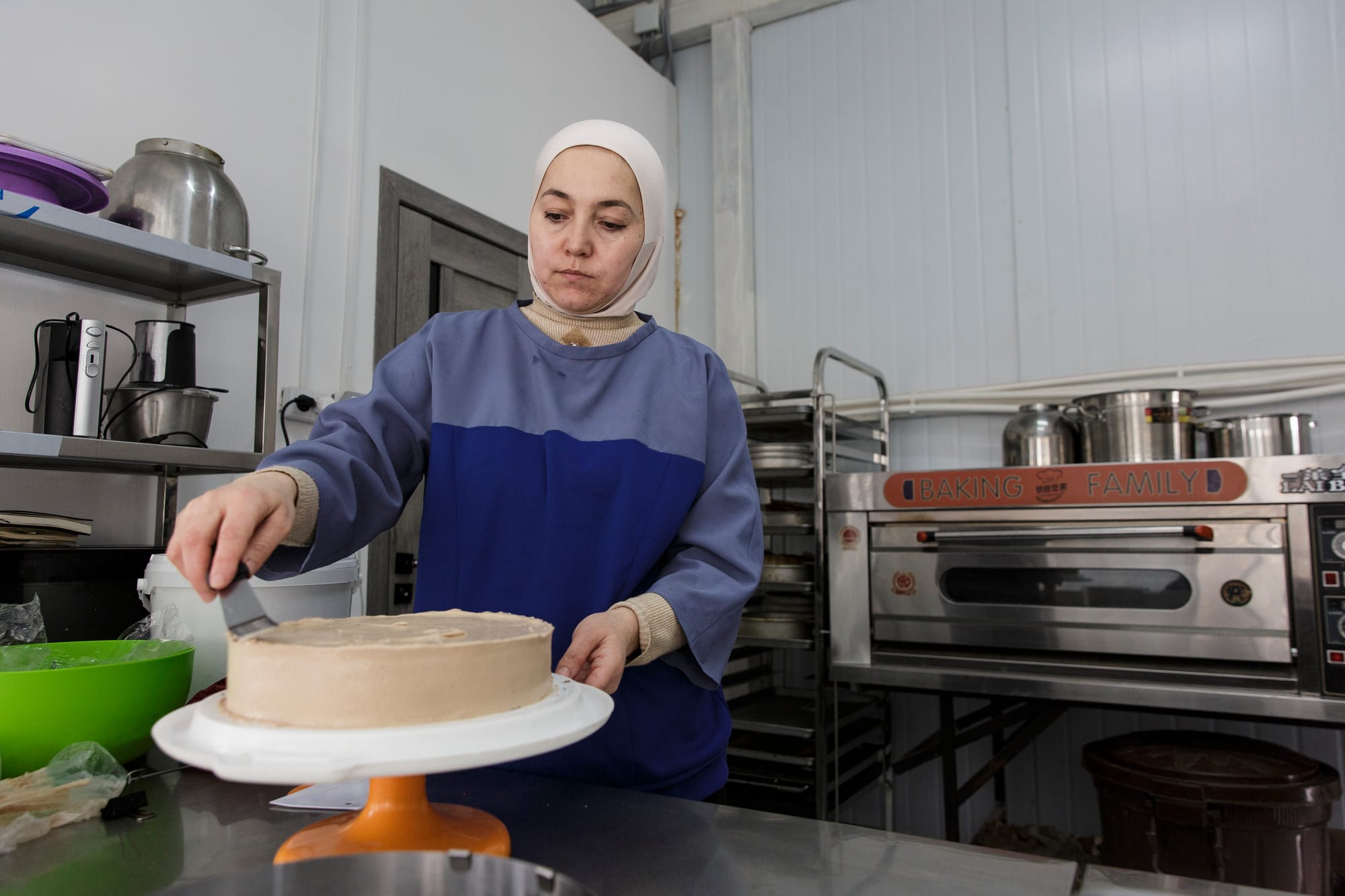 Историю производства тортов жительница Кызыл-Кии Жаркынай Ибрагимова ведет с 2023 года – на протяжении нескольких лет она выпекала продукцию для местных кофеен небольшими объемами. Поддержка мужа и участие в пилотной инициативе софинансирования «1+1» Международной организации по миграции (МОМ) помогли ей осуществить большую мечту. Предпринимательница открыла кондитерский цех, что позволило добавить в линейку новые виды сладких изделий и увеличить объемы продаж.
