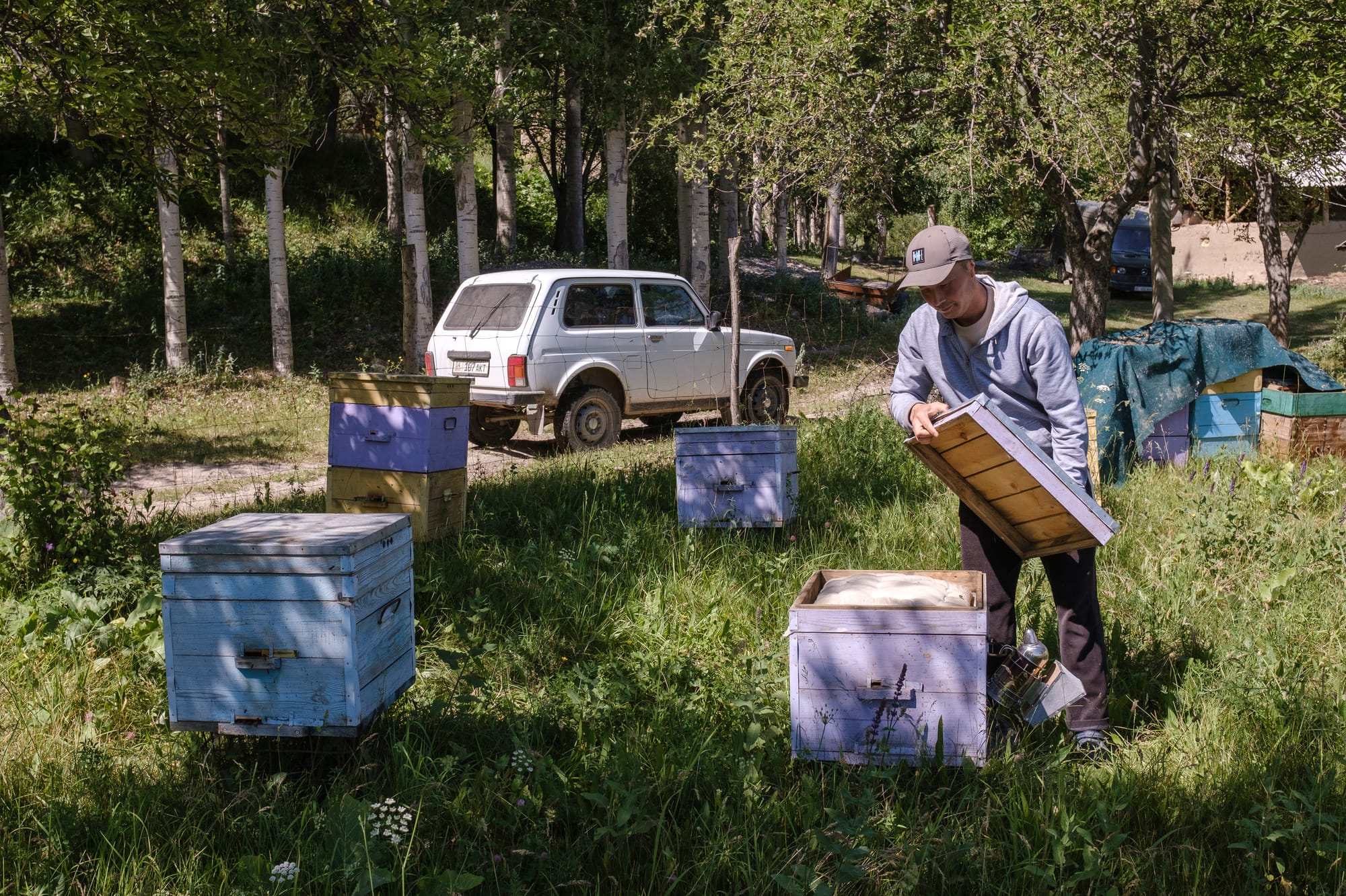 – В основном мы делаем эту работу вместе с моей семьей. Помогают отец, младший брат, иногда – старший. После того, как мы привезли и установили ульи, я уехал работать в Европу. В это время за ульями ухаживала моя семья.