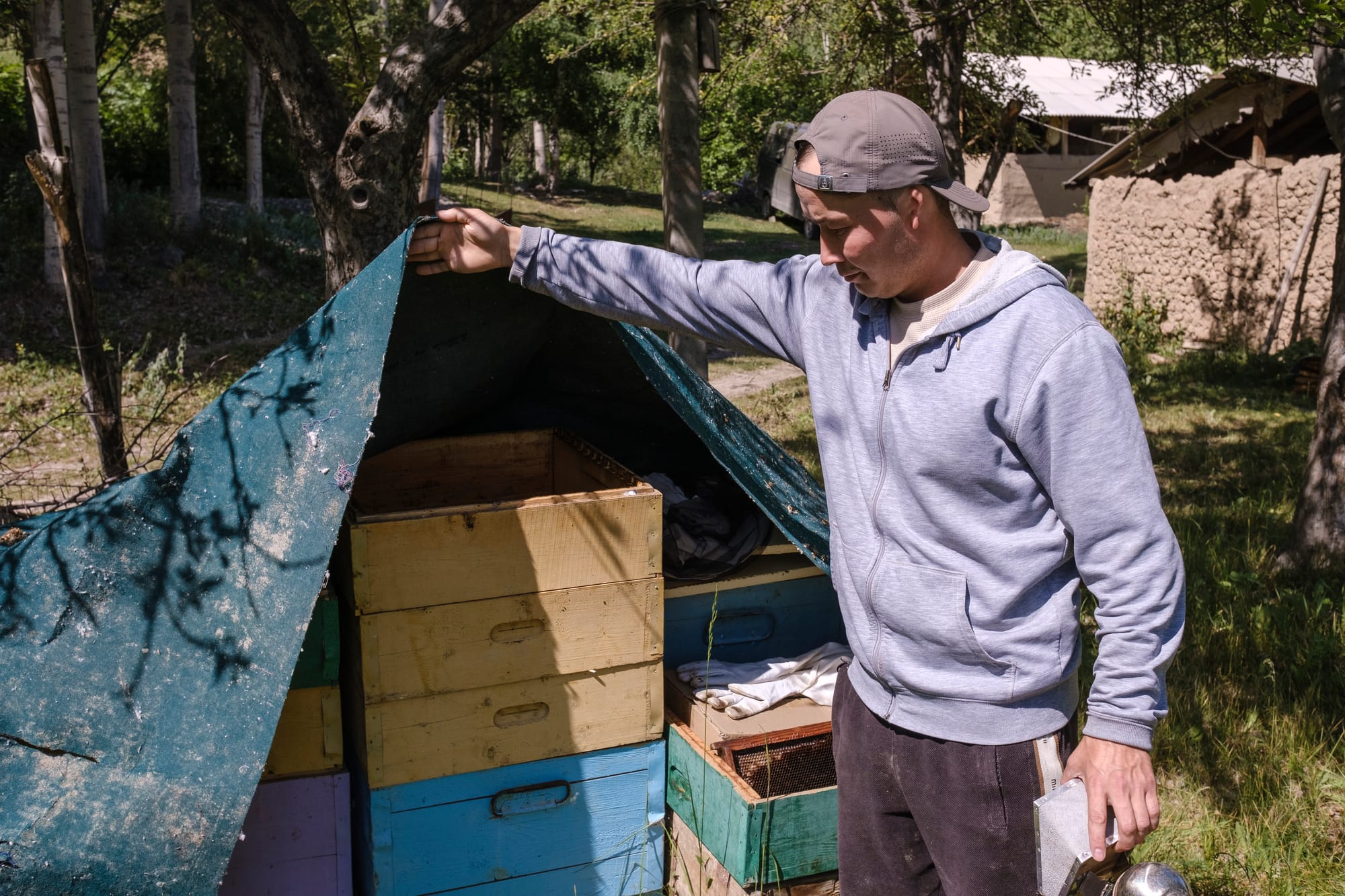 – Я родом из села Газ Баткенского района. Раньше занимался земледелием и сельским хозяйством. Затем был трудовым мигрантом в России и Англии. Работал там в качестве механика на заводах, ремонтировал автомобили, устанавливал системы вентиляции и кондиционирования. Позже я принял участие в пилотной программе «1+1» Международной организации по миграции (МОМ) и выиграл грант. Благодаря этой поддержке я начал небольшой бизнес и сейчас занимаюсь пчеловодством в родном селе.