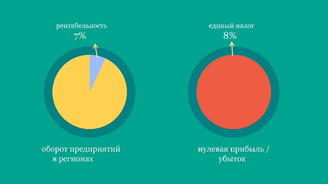 Представляете, стройкомпании, зарабатывающие миллионы долларов, платят 1% налогов, а какая-нибудь столовая в регионах – в 8 раз выше.
