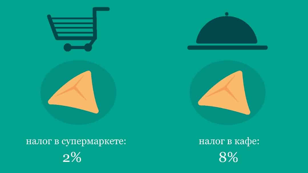 Представьте, что вы купили булочку в супермаркете и оплатили картой. Магазин заплатит с продажи 2% налога. А если эту же булочку вы купили в столовой, то столовая заплатит 8% налога.