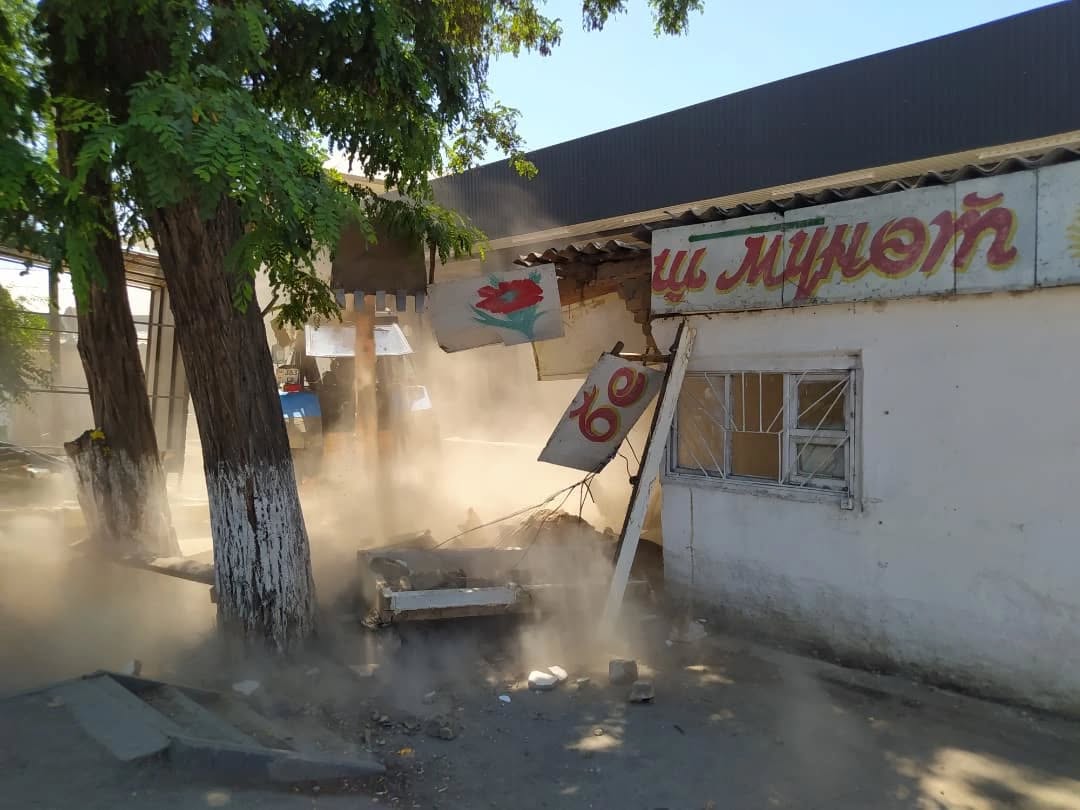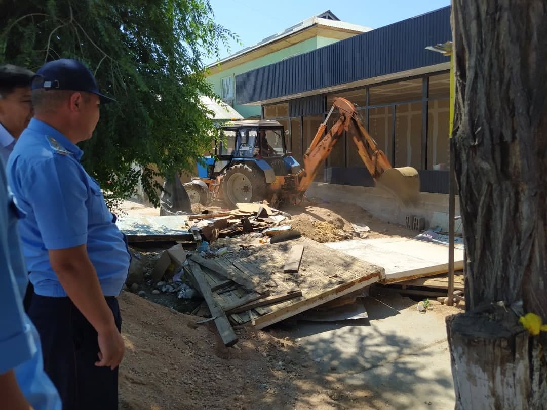 В Токтогуле снесли торговые самострои вдоль трассы Бишкек – Ош