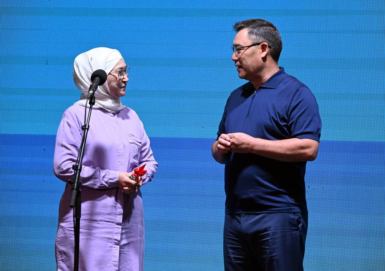 По завершении церемонии президент лично вручил ключи от новой квартиры матери троих детей Астре Асанакуновой, которая ожидала жилье в течение четырех лет.