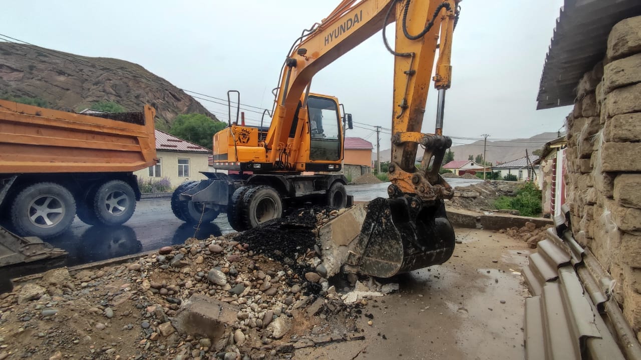 В Нарыне продолжается снос незаконных построек, мешающих дорожным работам
