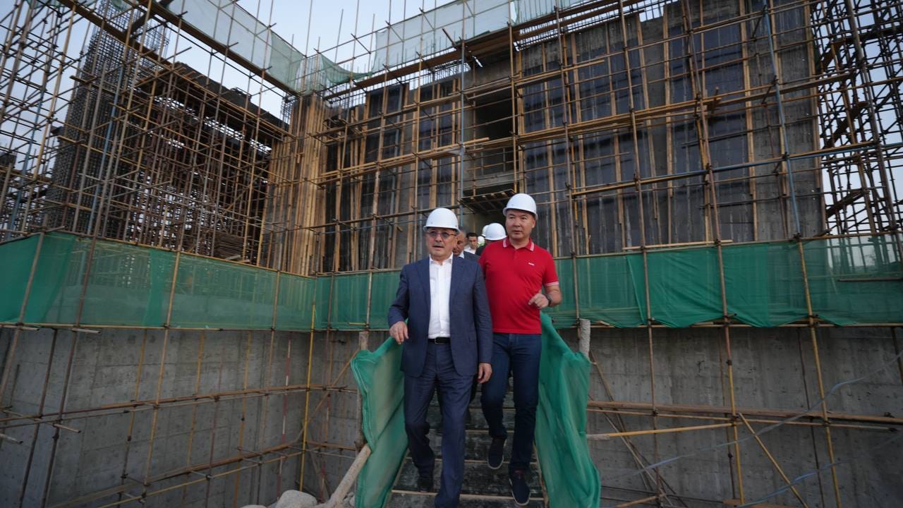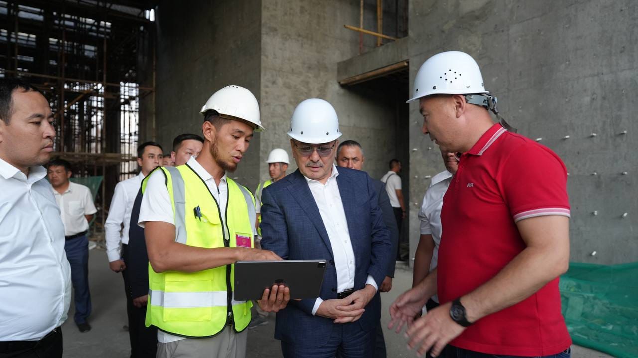 Адылбек Касымалиев инспектирует строительство стадиона и конгресс-холла в Бишкеке. Фото: пресс-служба кабмина КР.