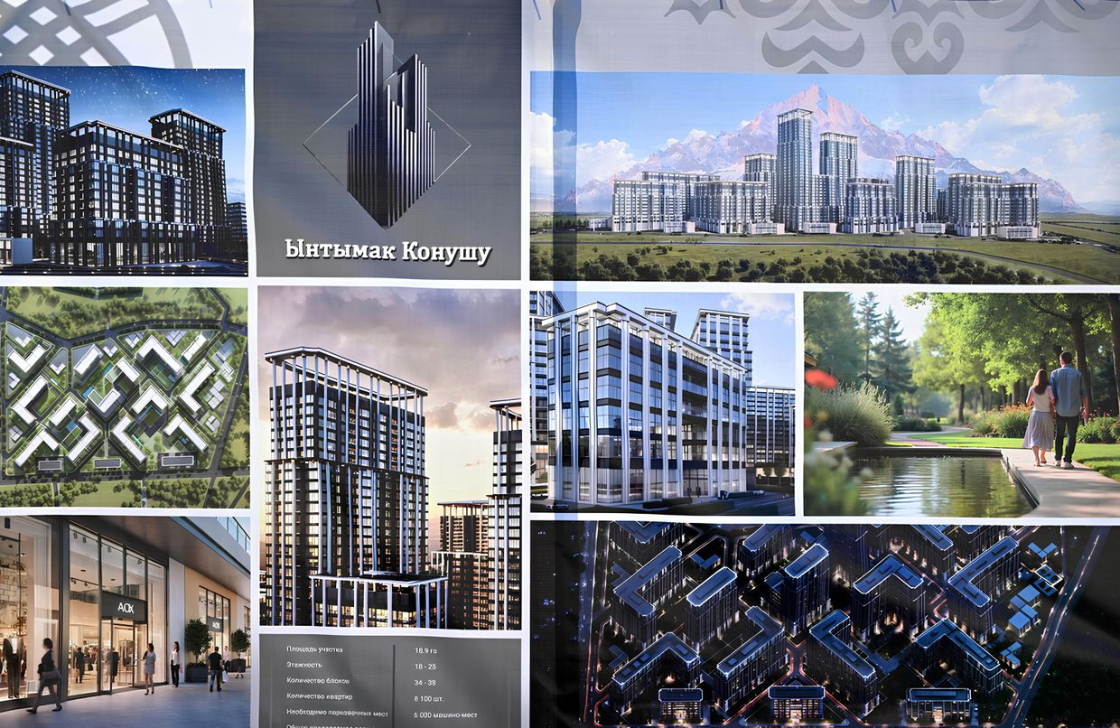 Строительство жилого комплекса «Ынтымак» в южной части Бишкека началось в октябре 2024 года. Всего запланированы семь 18-этажных блоков в 14 подъездов, общее количество квартир составит 918.