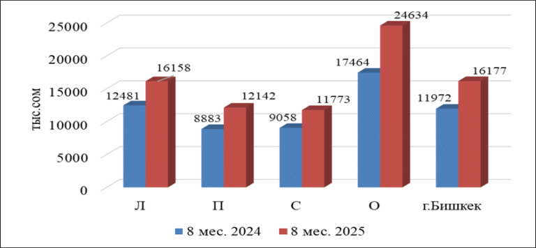 В Бишкеке средневзвешенная цена индивидуального жилого дома достигла 16.2 млн сомов, что на 35.1% выше, чем годом ранее. Самыми дорогими оказались дома в Октябрьском районе – в среднем 24.6 млн сомов.