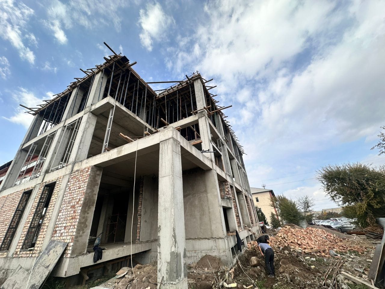 По проекту возводят современное трехэтажное здание площадью 950 м². Строительно-монтажные работы выполняет ОсОО «ЭКАРАС-5» под контролем Департамента жилищно-гражданского строительства.