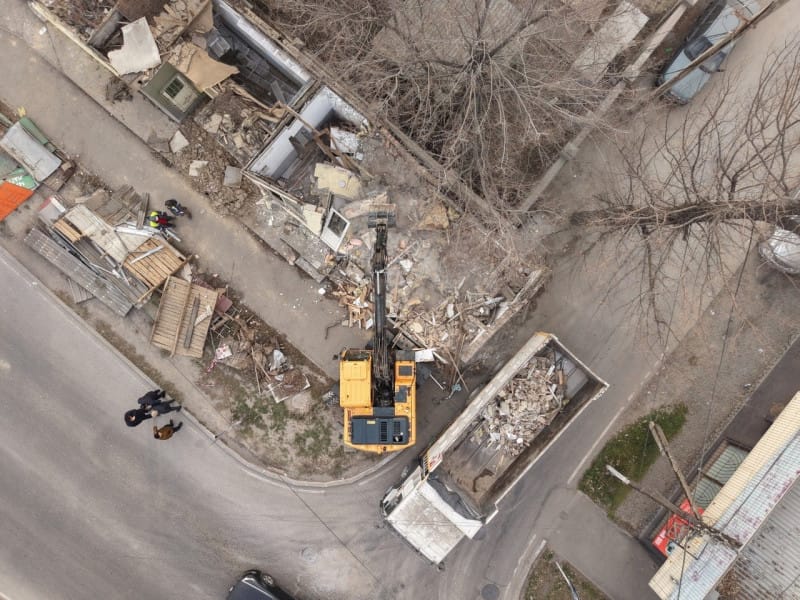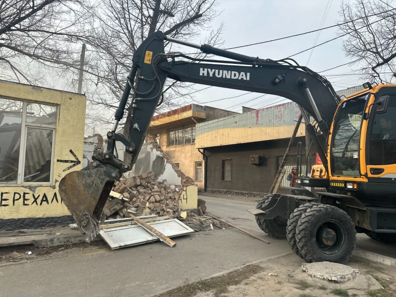 В Бишкеке 5 декабря Управление по контролю за землепользованием демонтировало шесть капитальных объектов у Старого автовокзала на пересечении проспекта Жибек-Жолу и улицы Осмонкула по решению комиссии мэрии города в связи с завершением срока аренды.