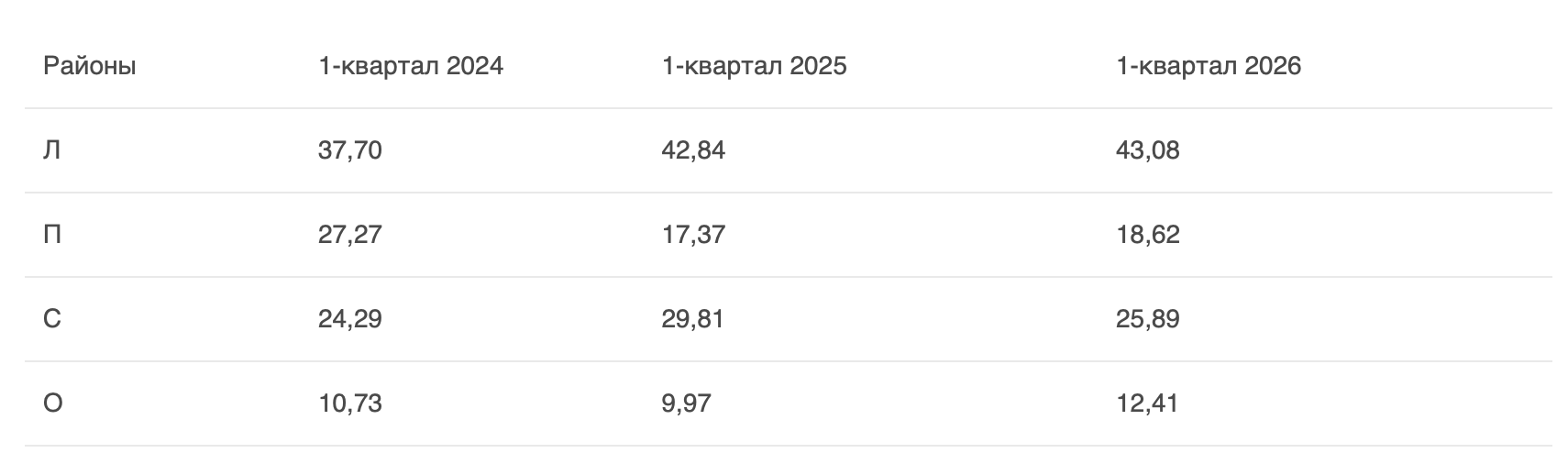 Индивидуальное жилье, напротив, теряет позиции. За первые три месяца года объем продаж в этом сегменте сократился на 17.3%. Даже в тех районах, которые традиционно считаются центрами частной застройки и удерживают до 43% рынка особняков, общая тенденция остается отрицательной. Снижение интереса к частным домам прослеживается на протяжении последних нескольких лет. Покупатели все реже готовы вкладываться в содержание собственного дома.