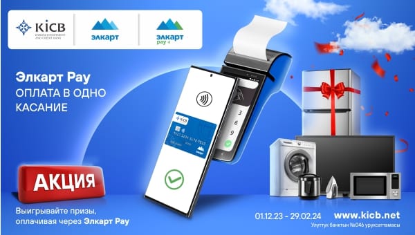 В честь запуска Элкарт Pay, Банк KICB объявляет о начале акции «Элкарт Pay с KICB – Оплата в одно касание!»! Оплачивайте бесконтактно картой Элкарт через приложение KICB и выигрывайте: Плазменный телевизор, Холодильник, Стиральную машину и множество других призов.