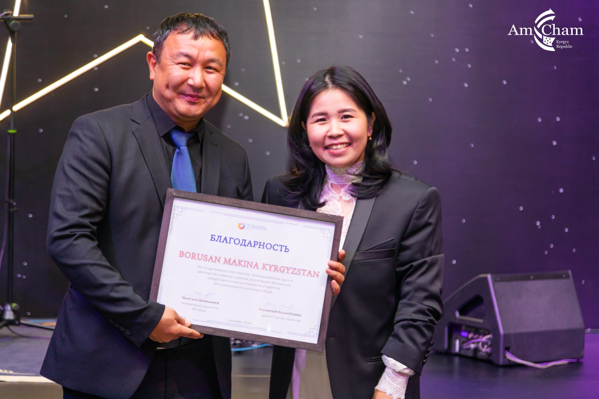 Господин Лесли Вигери, посол США в Кыргызской Республике, и Назира Бейшеналиева, председатель Совета директоров Американской торговой палаты в КР, вручили сертификаты о членстве новым компаниям-членам. Американская торговая палата рада приветствовать новых участников и с нетерпением ожидает успешного сотрудничества в будущем.