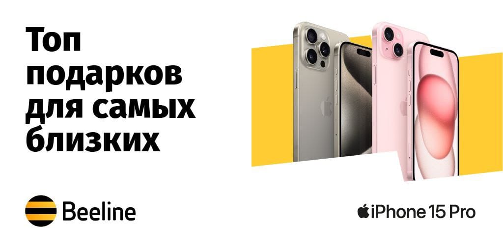 К Новому году Beeline подготовил выгодное предложение: IPhone 15 Pro 128 GB можно купить по специальной цене 103 000 сомов вместо 111 900 сомов.
