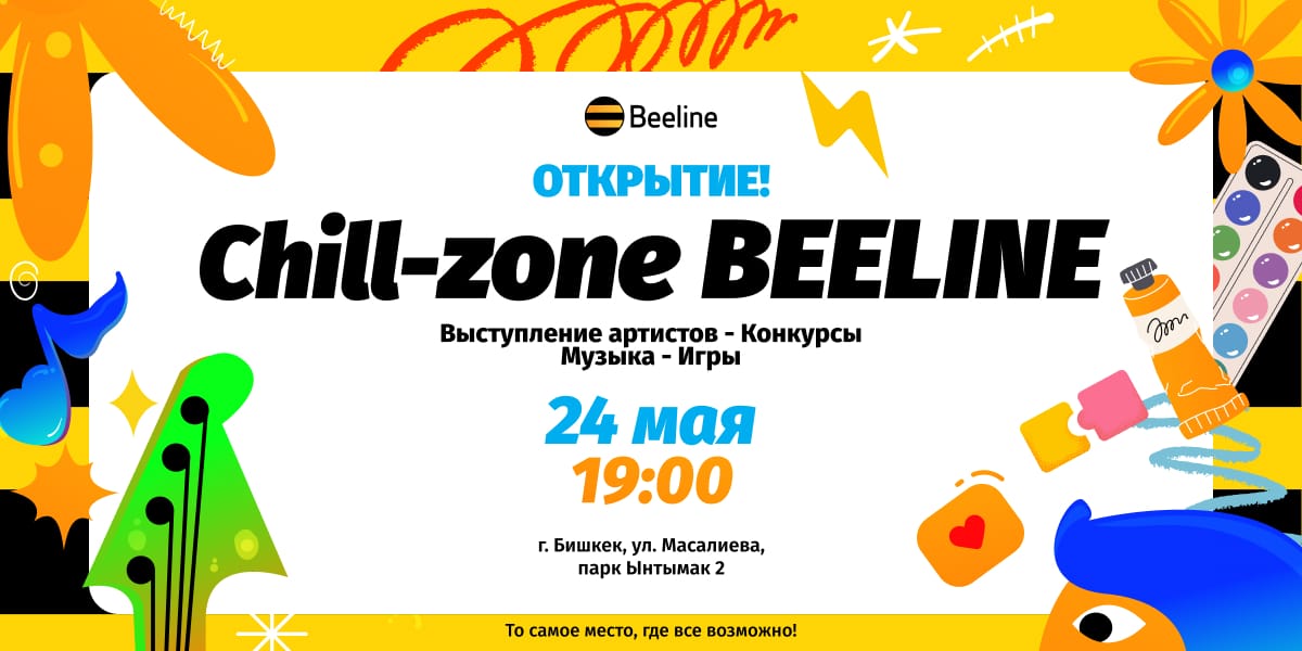 Сотовый оператор Beeline Кыргызстан приглашает бишкекчан и гостей столицы на праздничное открытие Chill Zone, которое состоится 24 мая в 19:00 в парке «Ынтымак-2» (ориентир — амфитеатр). Вас ждут выступления артистов, игры на свежем воздухе, кинопоказ и другие сюрпризы. Вход свободный!