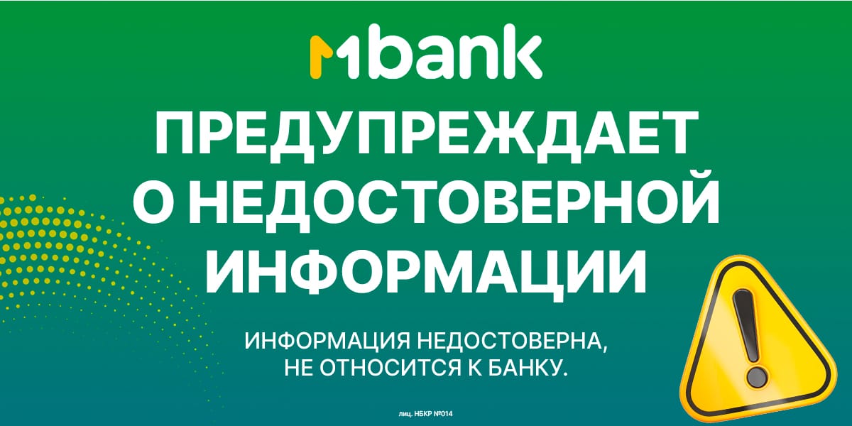 Такие сообщения могут вызывать беспокойство, поэтому MBANK настоятельно рекомендует доверять только проверенным источникам информации. Официальный сайт банка — www.mbank.kg — является основным и самым достоверным источником актуальных сведений.