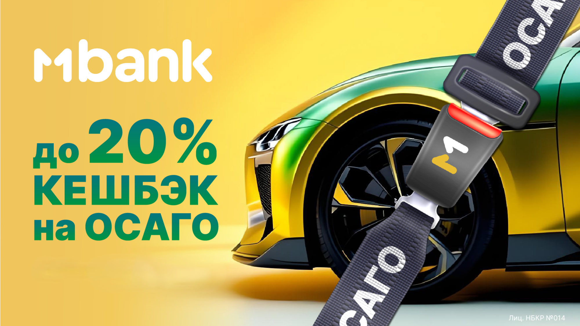 Решение: оформить ОСАГО до 31.08.2025 со скидкой до 20 % в приложении MBANK.