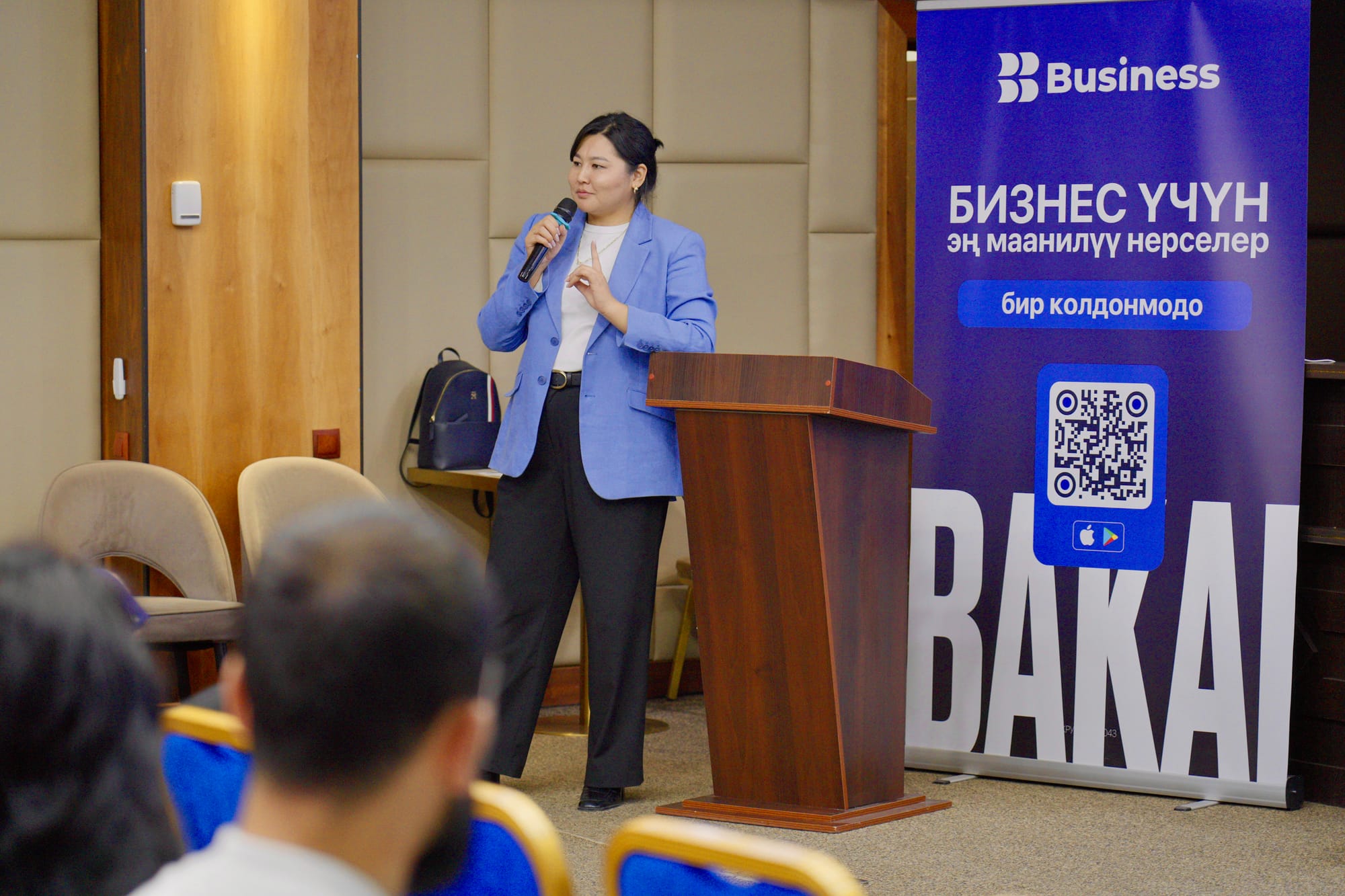 - Болот уулу Эсбола, начальник отдела аналитики и разработки кредитных продуктов «Бакай Банка» — представил инструменты поддержки малого и среднего бизнеса.