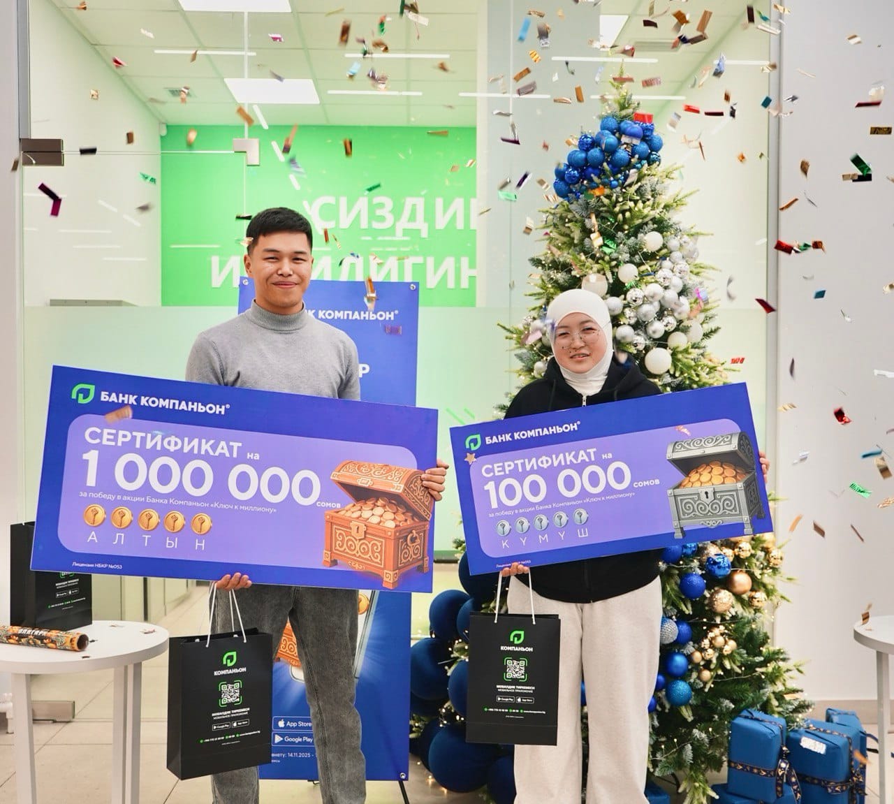 Главный приз — 1 000 000 сомов — достался Мухаматжанову Аргену, который открыл золотой сундук и стал миллионером вместе с «Банком Компаньон».