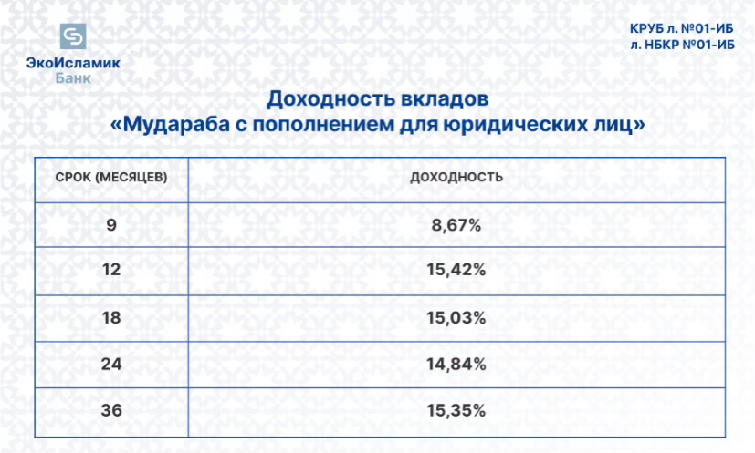 Откройте инвестиционный исламский депозит для юридических лиц доходностью до 15,42% годовых