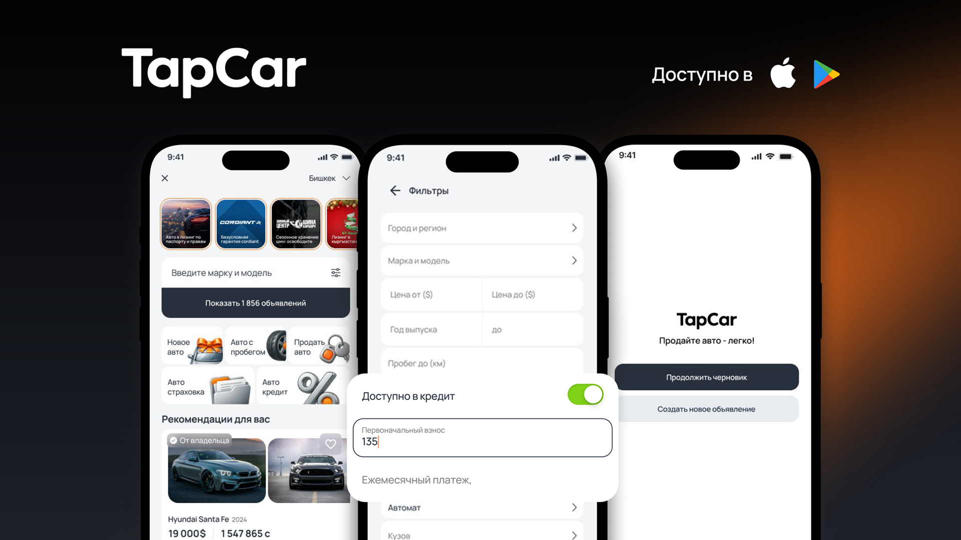 Название Tapcar отражает суть сервиса. Оно образовано от кыргызского слова «tap» – «найти» и английского «car» – «автомобиль», то есть «найти машину». Платформа ориентирована как на частных продавцов, так и на автодилеров. Уже на старте на ней размещены тысячи объявлений с автомобилями разных категорий – от бюджетных моделей до премиального сегмента.