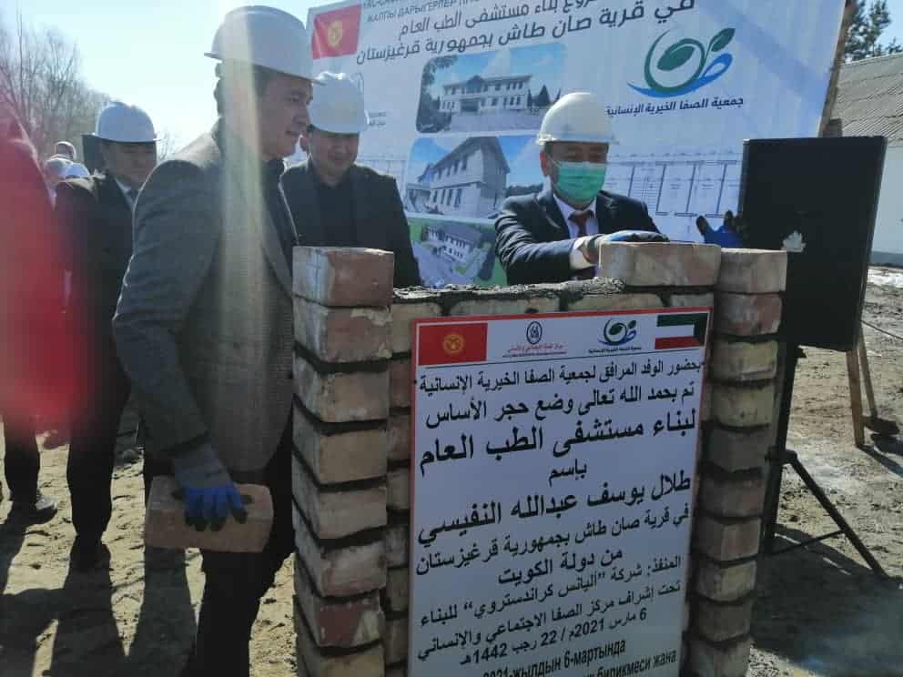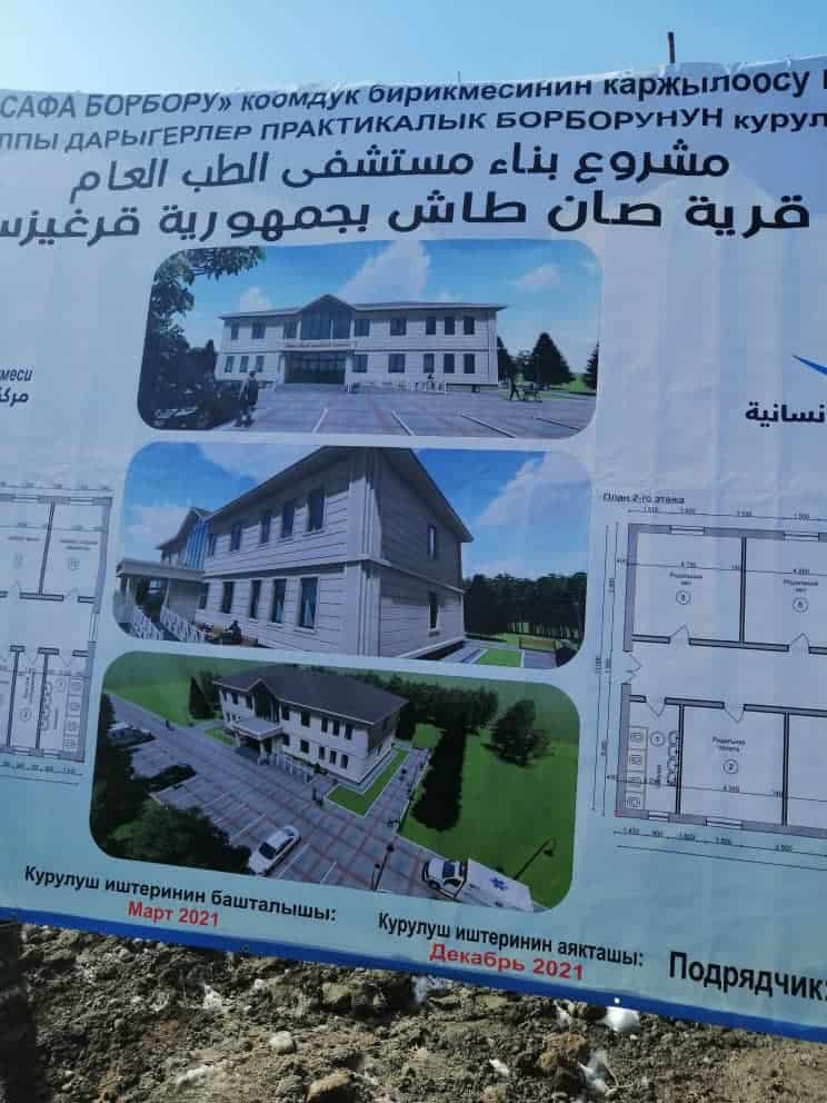 Кроме этого, «Центр Ас-Сафа» на данный момент ведет строительство пятиэтажного Онкологического отделения для детей при НЦОМиД в Бишкеке, 8 фельдшерско-акушерских пунктов (ФАП) по всей республике, здание для Группы семейных врачей в Токмоке и общежитие для Психоневрологического интерната также в Токмок.