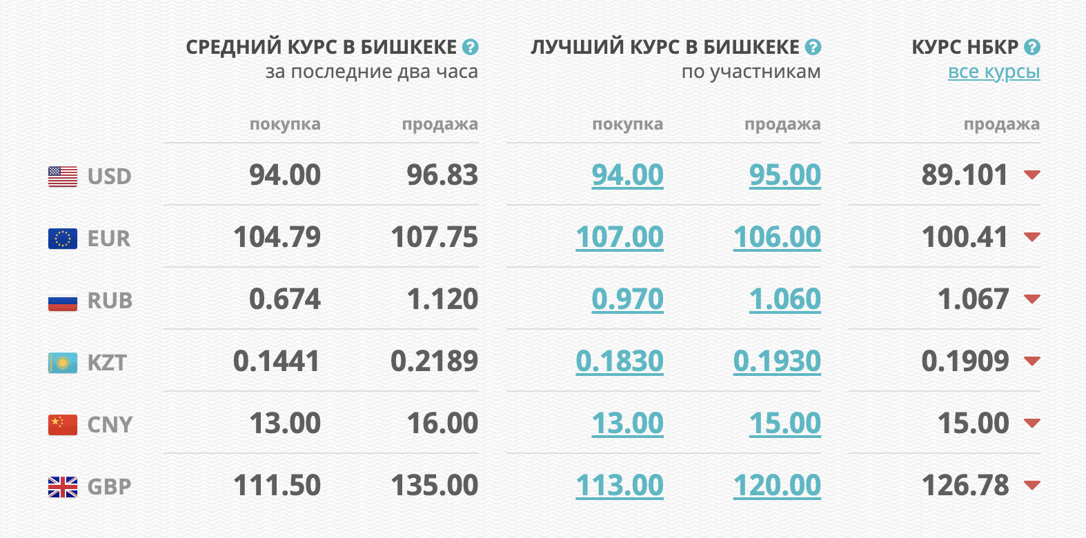 По данным портала valuta.kg, средний курс покупки рубля в Бишкеке сегодня (на момент публикации новости) составляет 0.67 сома, продажи — 1.12 сома.