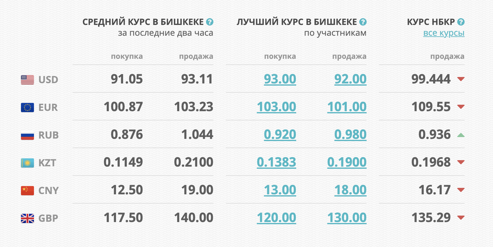 В коммерческих банках курс покупки долларов составляет 90.5-92 сома за $1, курс продажи американской валюты – 92.5-94 сома за $1.