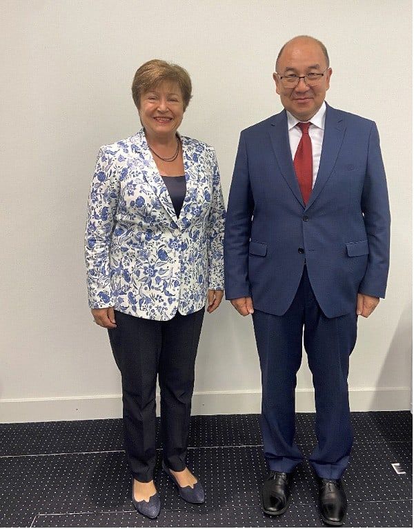 Председатель Нацбанка Кубанычбек Боконтаев провел двусторонние встречи с директором-распорядителем Международного валютного фонда (МВФ) Кристалиной Георгиевой и председателем Нацбанка Швейцарии Томасом Йорданом.