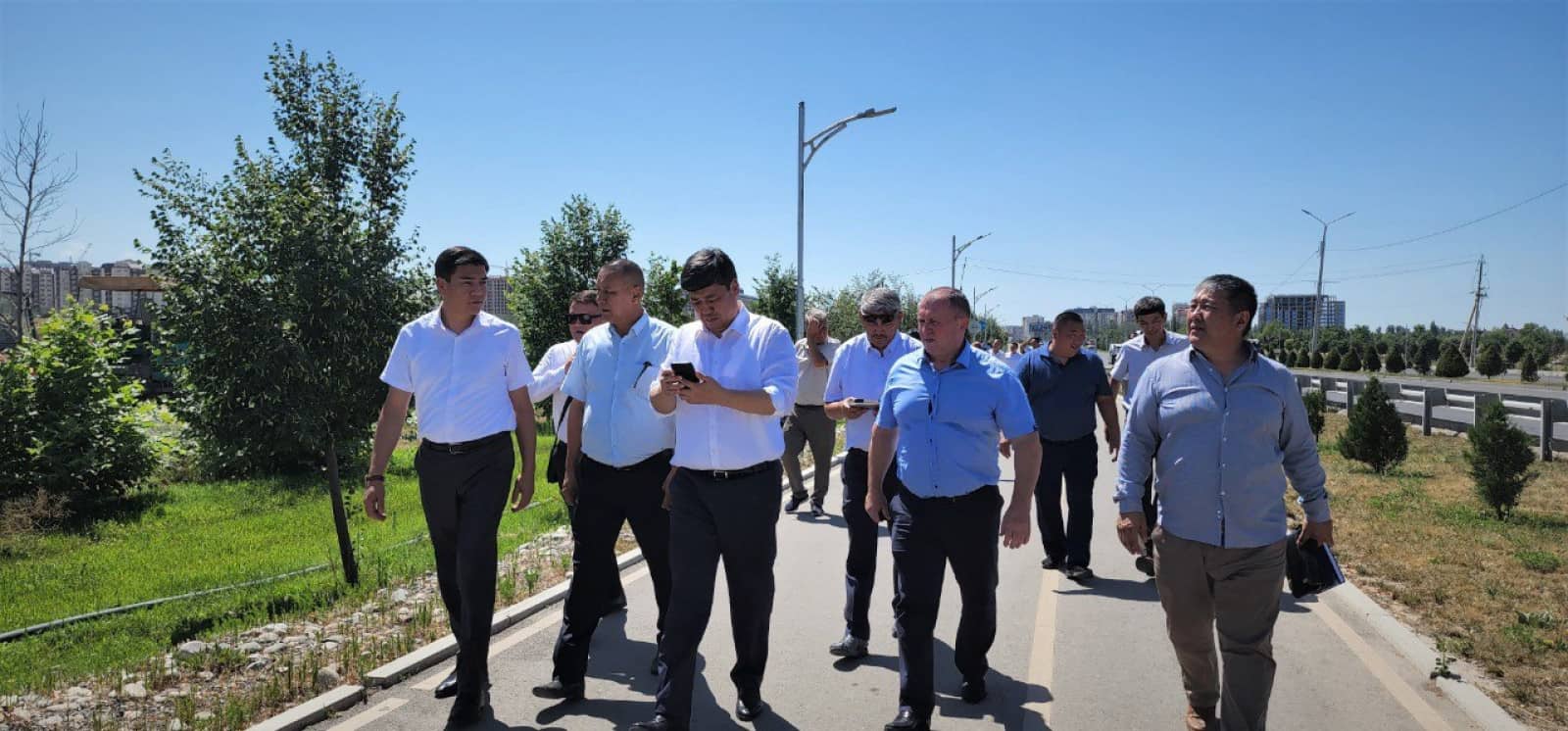 «В арыках города нет воды. Старая оросительная сеть нуждается в обновлении. В первую очередь городские власти должны взяться за надлежащее распределение водных потоков. В будущем ирригационные каналы для полива должны охватить все кварталы и микрорайоны столицы. В ближайшее время будет определено место для бурения скважины с целью получения дополнительных объемов воды», — сказал замглавы кабмина.