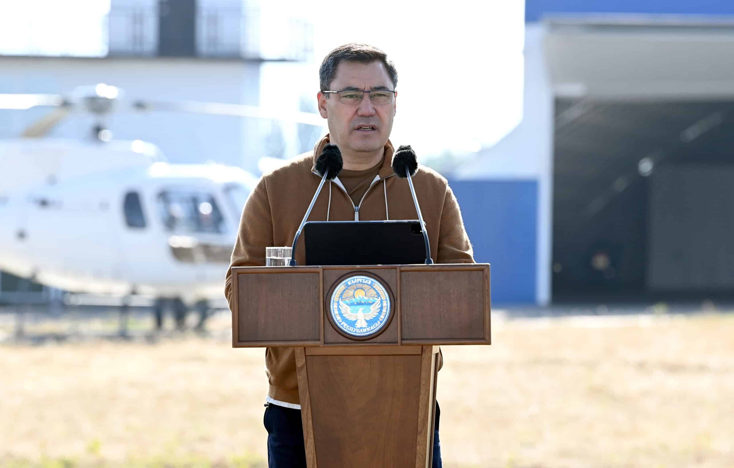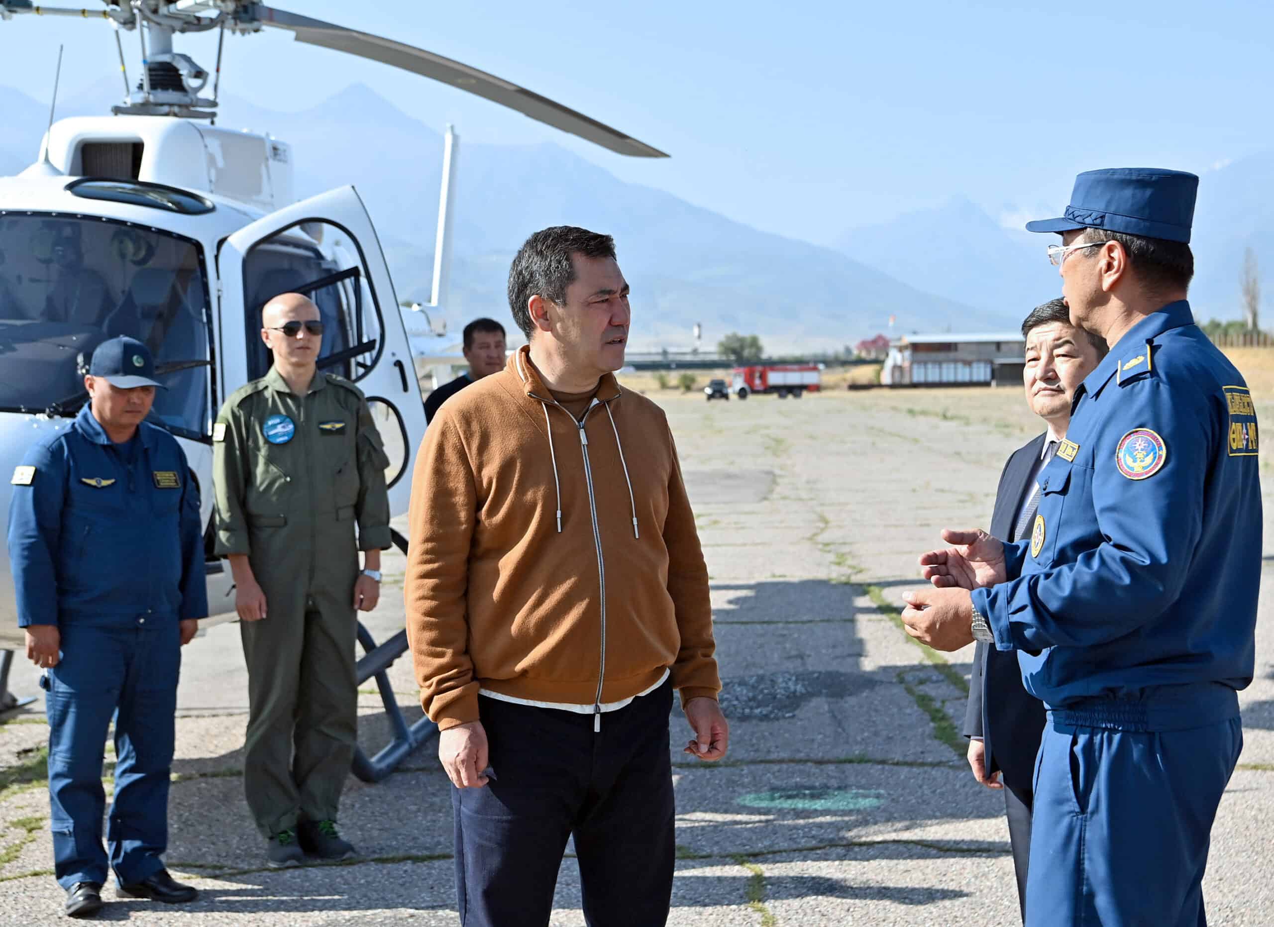 В церемонии передачи техники за счет бюджета и АБР поучаствовал президент Садыр Жапаров. Он осмотрел ангар и административное здание аэродрома МЧС, технику и быстровозводимые мобильные дома. Также ему продемонстрировали летные возможности многоцелевого вертолета Airbus H-125.