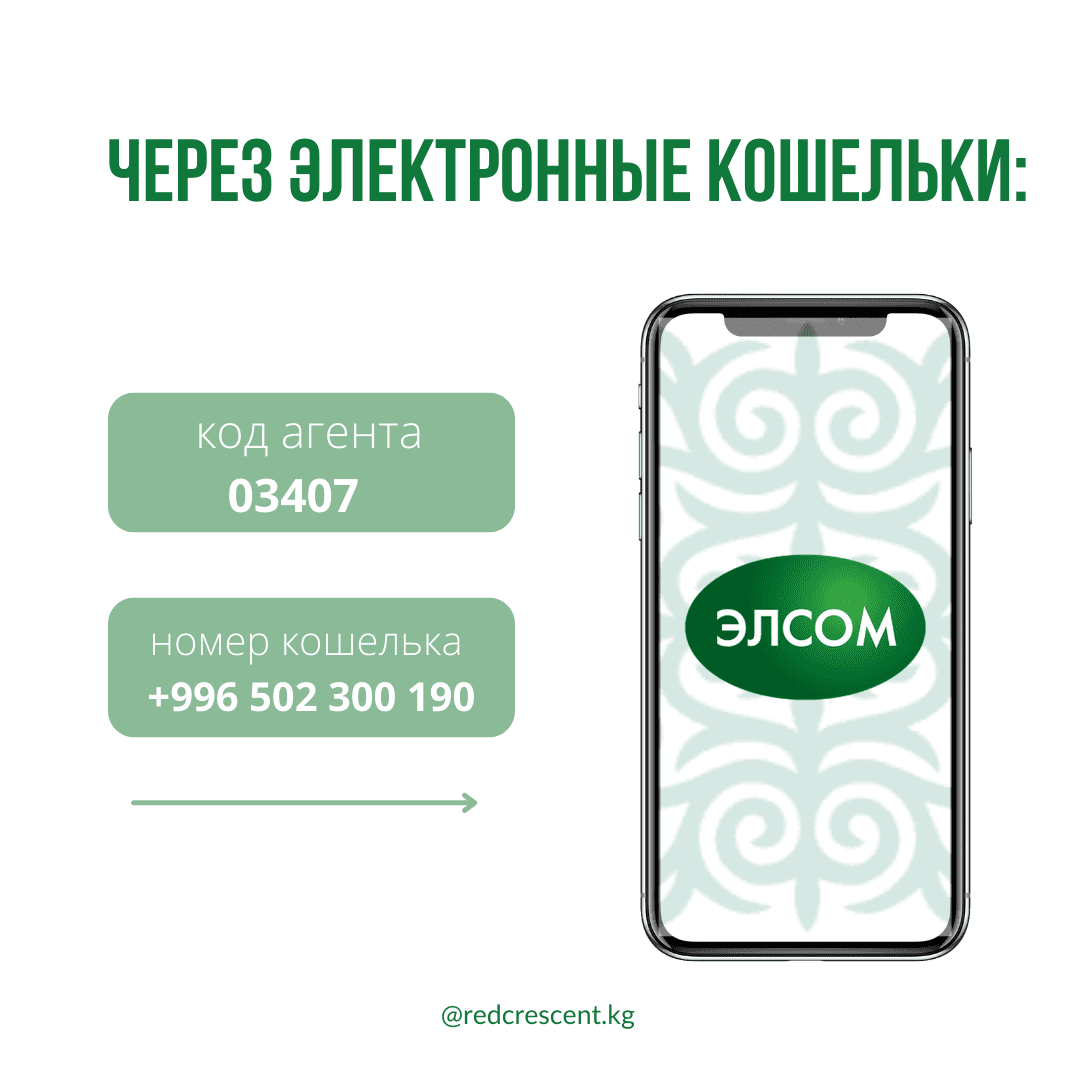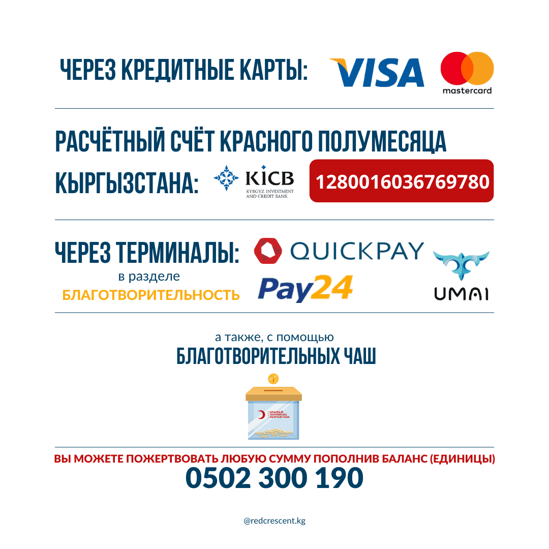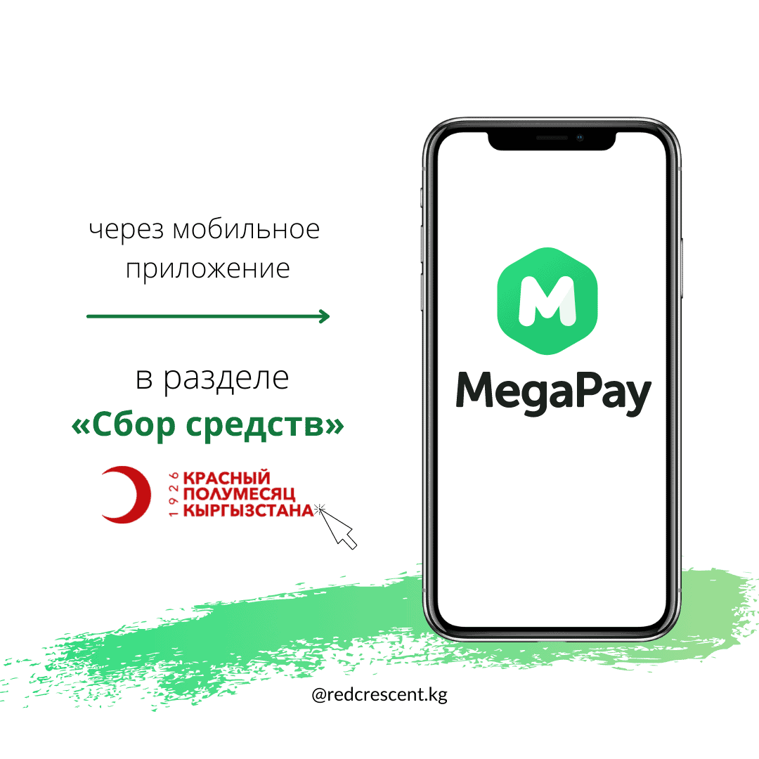 - MegaPay — в разделе «Сбор средств» выбираете Красный Полумесяц Кыргызстана;