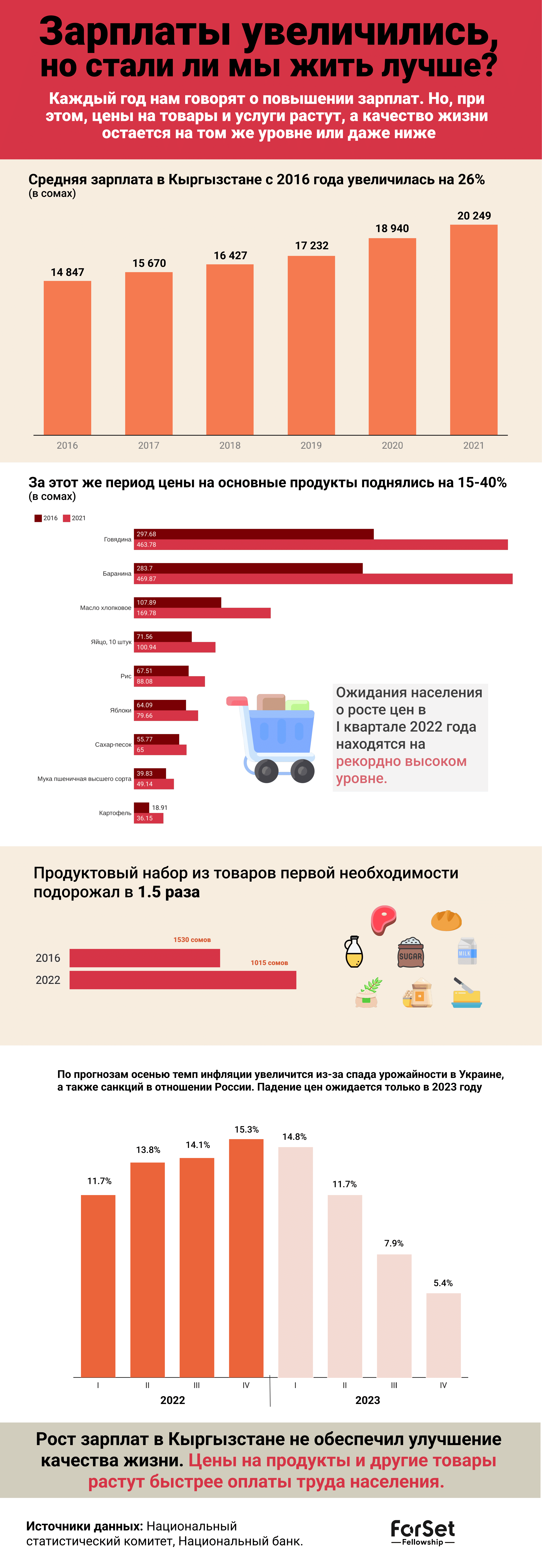 Economist.kg решил сравнить соотношение роста зарплат и цен на продукты, чтобы выяснить стали ли жить лучше люди в Кыргызстане за последние годы.