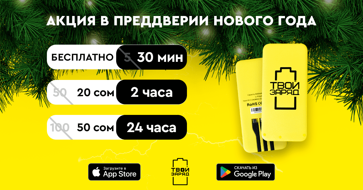 В преддверии Нового года первый отечественный сервис аренды павербанков «Твой заряд» для комфорта и удобства своих пользователей запустил новогоднюю акцию с праздничными тарифами и множеством крутых подарков!