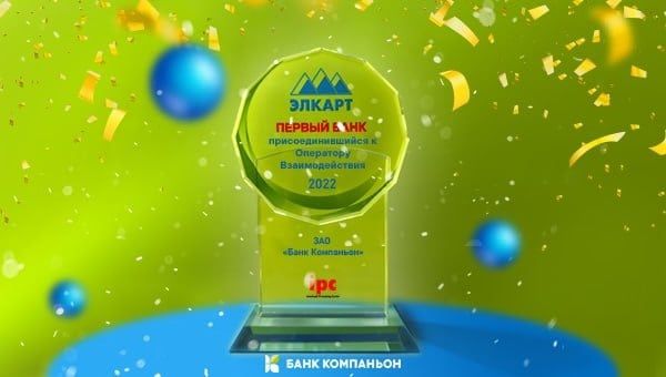 «Банк Компаньон» получил награду “Первый банк присоединившийся к Оператору взаимодействия” от Межбанковского процессингового центра (МПЦ). Церемония вручения прошла 13 декабря 2022 года в рамках подведения итогов работы национальной платежной системы «Элкарт».