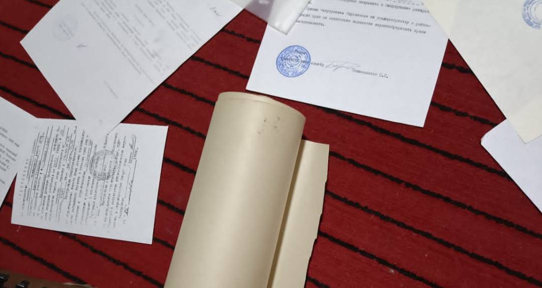 В частности, сотрудники ГКНБ обнаружили печатную машинку, рулон старой обесцвеченной бумаги для печатной машинки, готовые решения о выделении земельных участков, листы бумаги с печатями Орокского айыл окмоту старого образца и Сокулукского управления архитектуры и градостроительства, а также крупная сумма иностранной валюты.