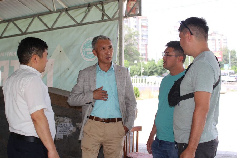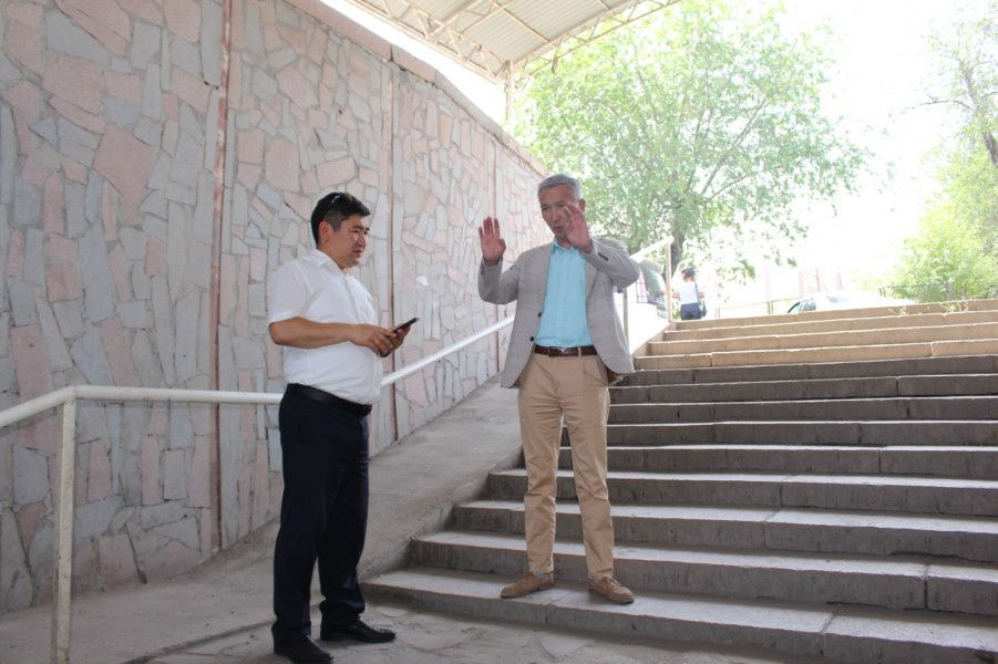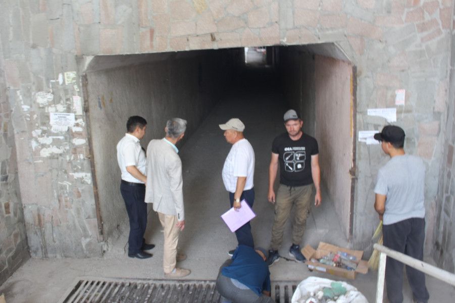 Глава Свердловского района Максатбек Саргазаков провел инспекцию подземного пешеходного перехода возле Восточного автовокзала, где ознакомился с санитарным состоянием подземки, с ходом строительства ирригационных лотков возле автовокзала.