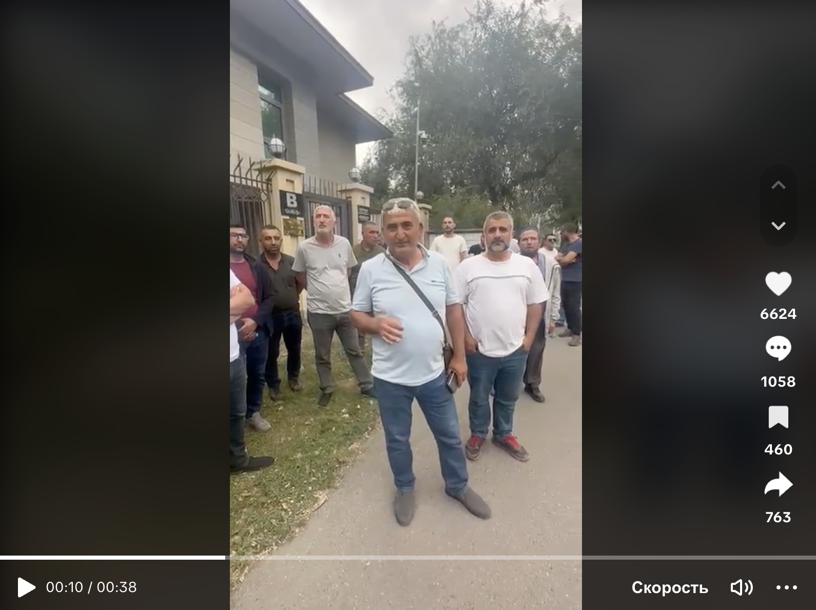 “На данный момент мы стоим возле посольства Турции в Кыргызстане. Нас, 24-х строителей, пригласило государство КР для строительства здания суда и прокуратуры. Однако уже 40 дней нам не платят заработную плату. К тому же нас выгнали из отеля. Мы в очень плачевном состоянии. Сейчас обращаемся к турецкому правительству, чтобы они помогли получить наши деньги и мы могли скорее вернуться домой”,— сообщает один из граждан.