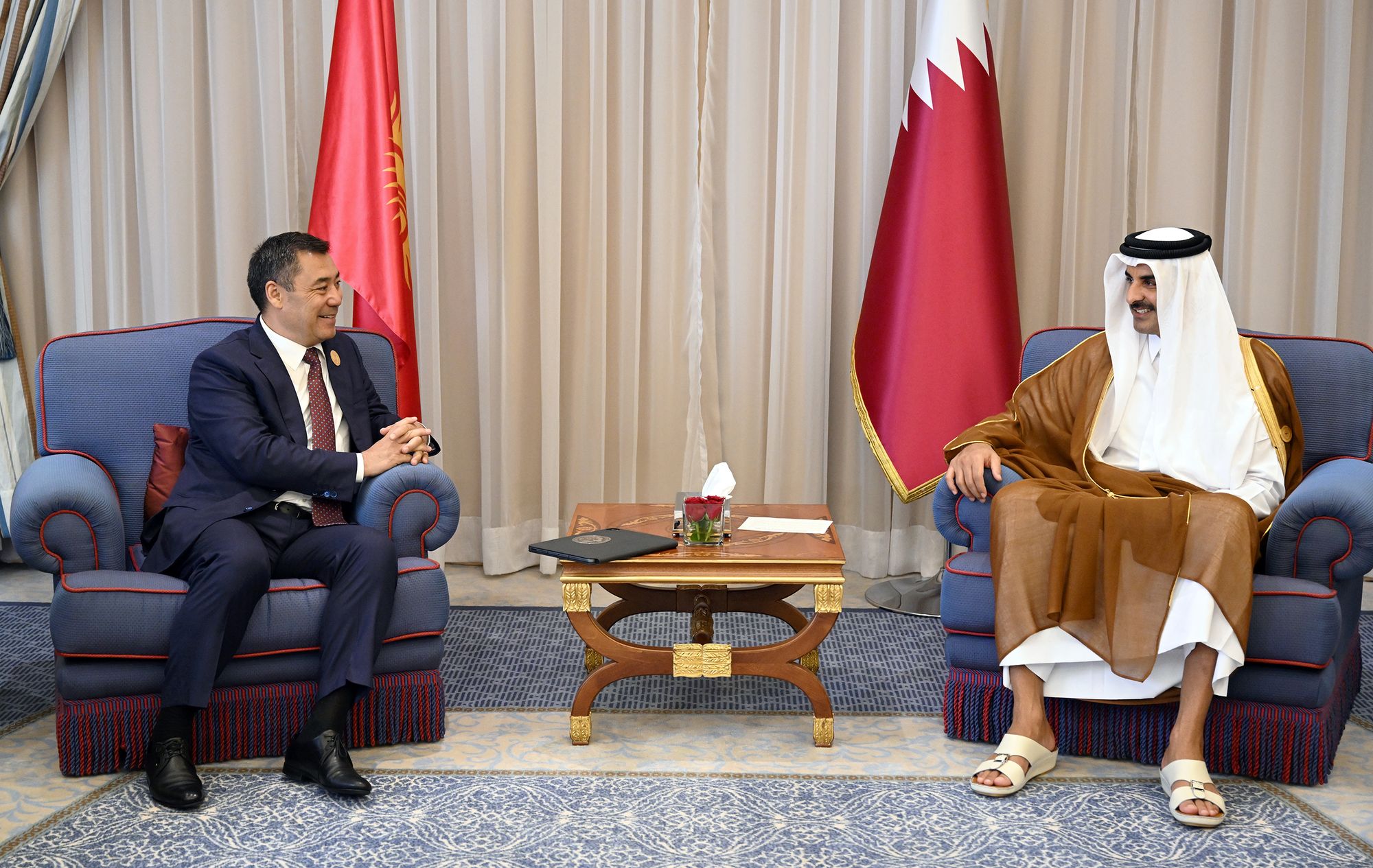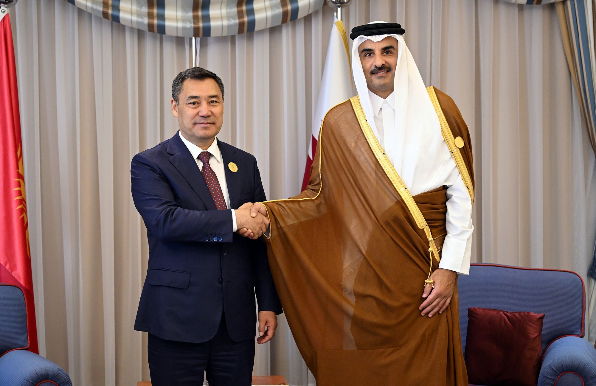 Президент Садыр Жапаров в рамках рабочей поездки в Джидду встретился с эмиром Катара Тамимом ибн Хамад Аль Тани. Об этом сообщили в пресс-службе главы государства.