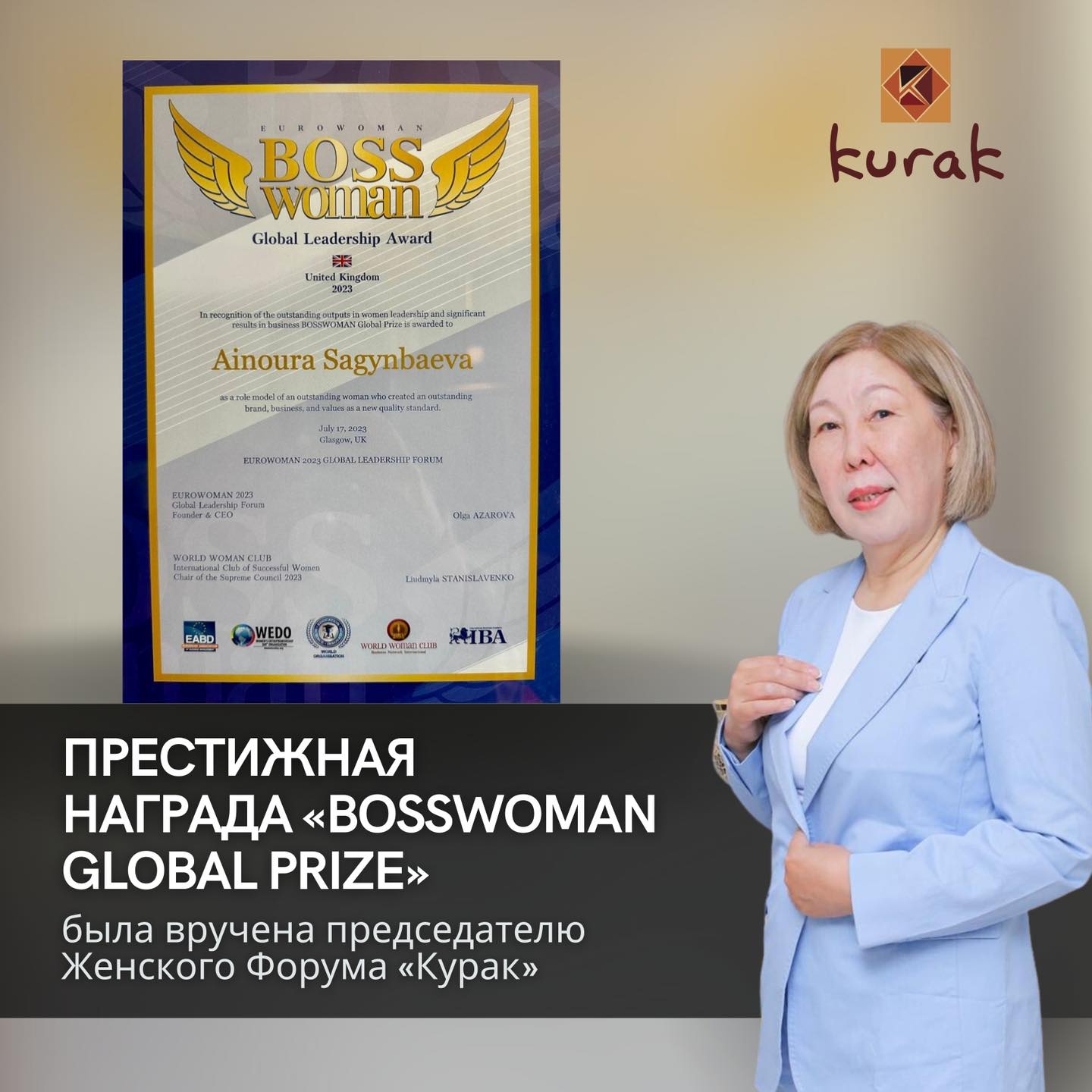 Награда была вручена на глобальном Европейском женском форуме Eurowoman 2023 в Глазго, где собрались сотни женщин из 27 стран. Она была вручена в знак признания выдающихся достижений в области женского лидерства и замечательных результатов в бизнесе Айнуры Сагынбаевой.