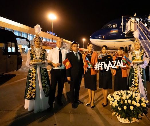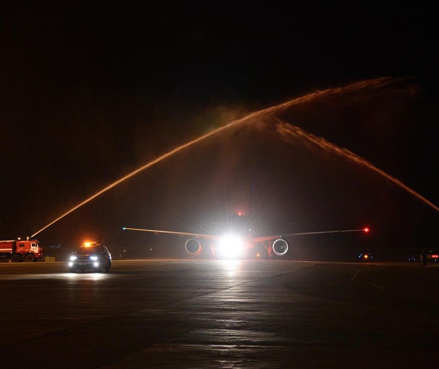 Первые пассажиры из Баку прибыли 23 июля. Рейс из Баку торжественно встретили водяной аркой.