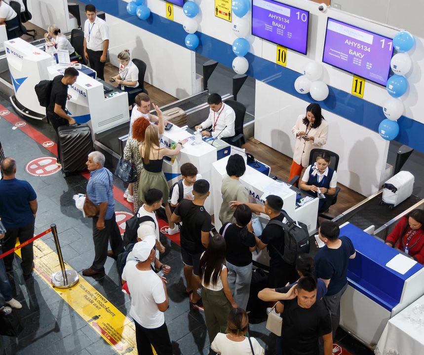 В Международном аэропорту "Манас" торжественно встретили первый рейс из Баку. Об этом сообщили в пресс-службе группы МАМ.