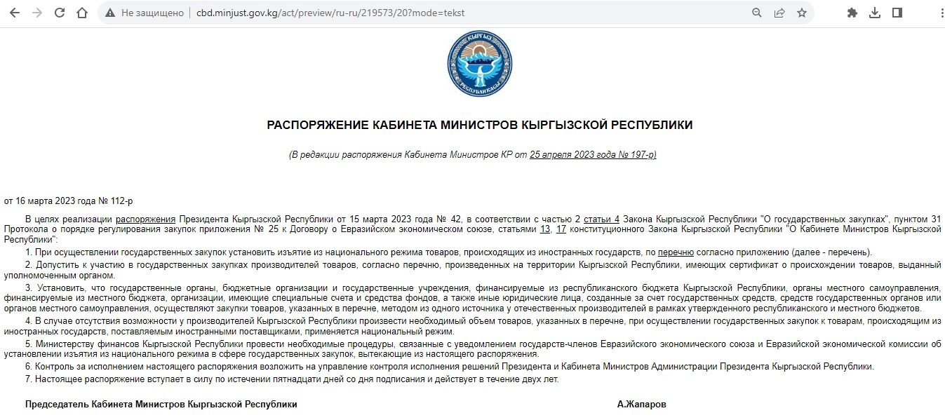 Конечно, нельзя утверждать, что все эти модели будут выпускаться на совместном кыргызско-узбекском автомобильном заводе в Чуйской области. Но постановоение правительства подготовило почву к тому, что любую из этих марок, а также все их, можно будет покупать у завода напрямую, что дает предприятию преференции, а значит, повышает привлекательность их выпуска в Кыргызстане.
