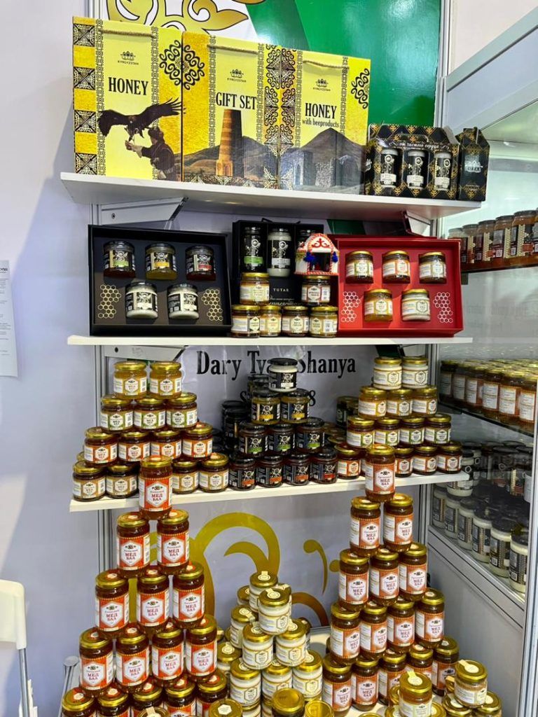 Выставка в Шанхае собрала более 150 тысяч посетителей из более чем 100 стран мира. В рамках национальной экспозиции Кыргызстана были представлены мед, сухофрукты, соки и бутилированная продукция, а также продукция ремесленничества.