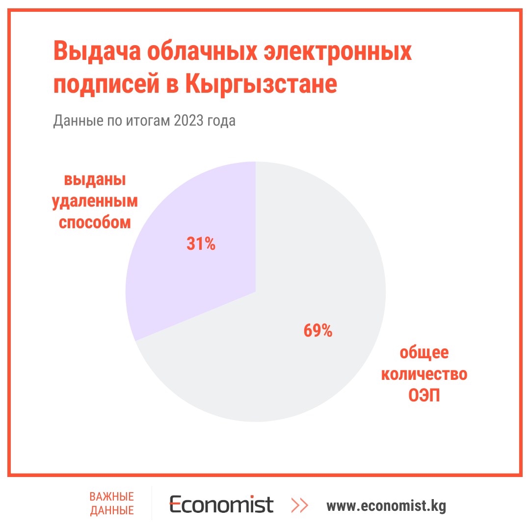 За 2023 год было выдано 945 тысяч облачных электронных подписей (ОЭП). При этом с начала реализации проекта суммарно выдано 1.1 млн электронных подписей. ОЭП находят широкое применение при получении цифровых услуг через портал «Тундук» и систему электронного документооборота «Инфодокс».