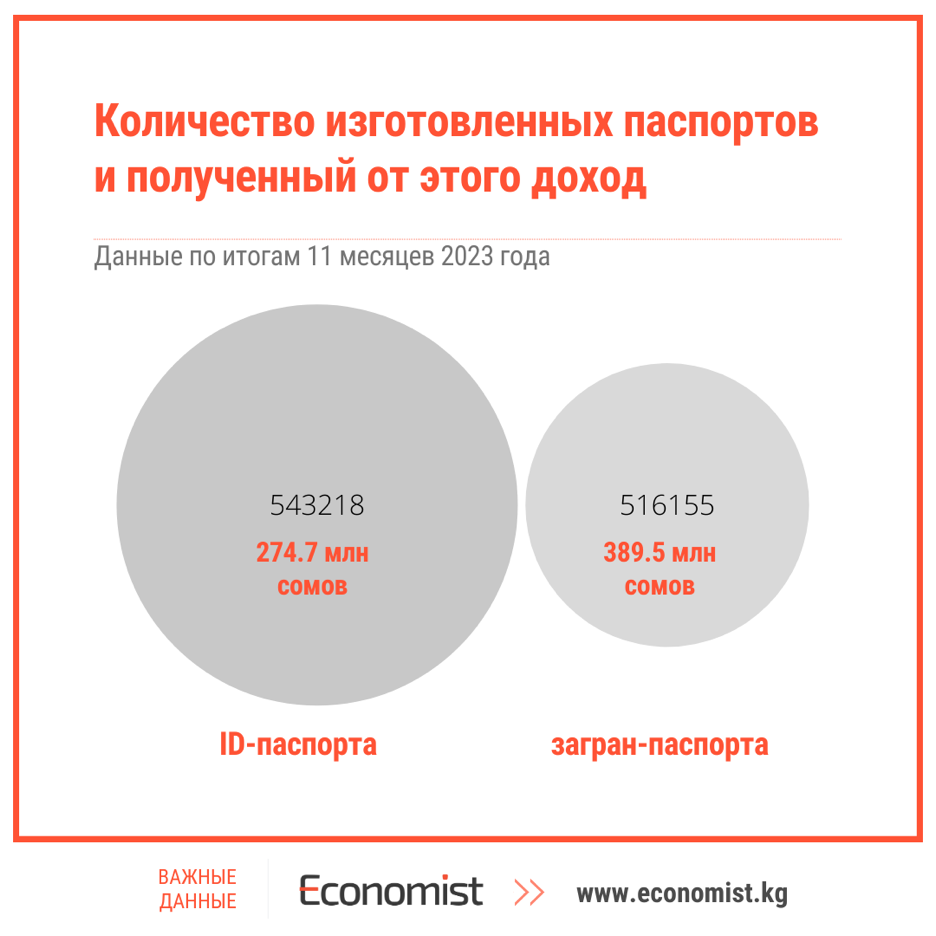 - заграничных паспортов: 516 тысяч 155 штук, сумма дохода – 389.5 млн сомов.