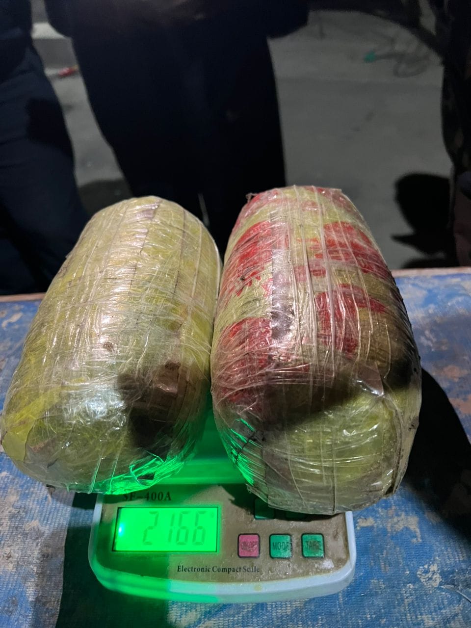 По данным спецслужбы, Е.А.А. использовал свой дом в качестве перевалочной базы для транспортировки и переправки наркотических средств. В ходе обыска в жилище подозреваемого обнаружили и изъяли два обмотанных скотчем полиэтиленовых пакета. Внутри находилось вещество общим весом 2.1 кг с характерным запахом афганского гашиша.