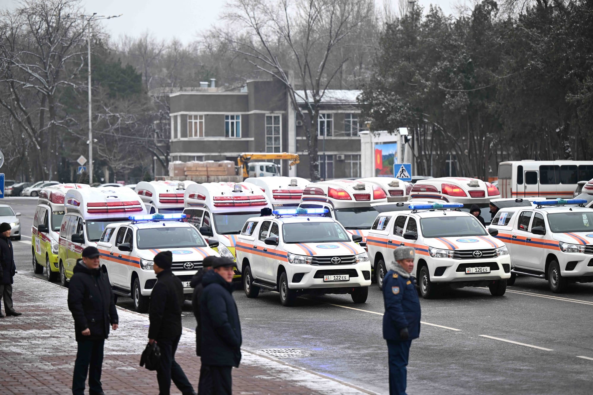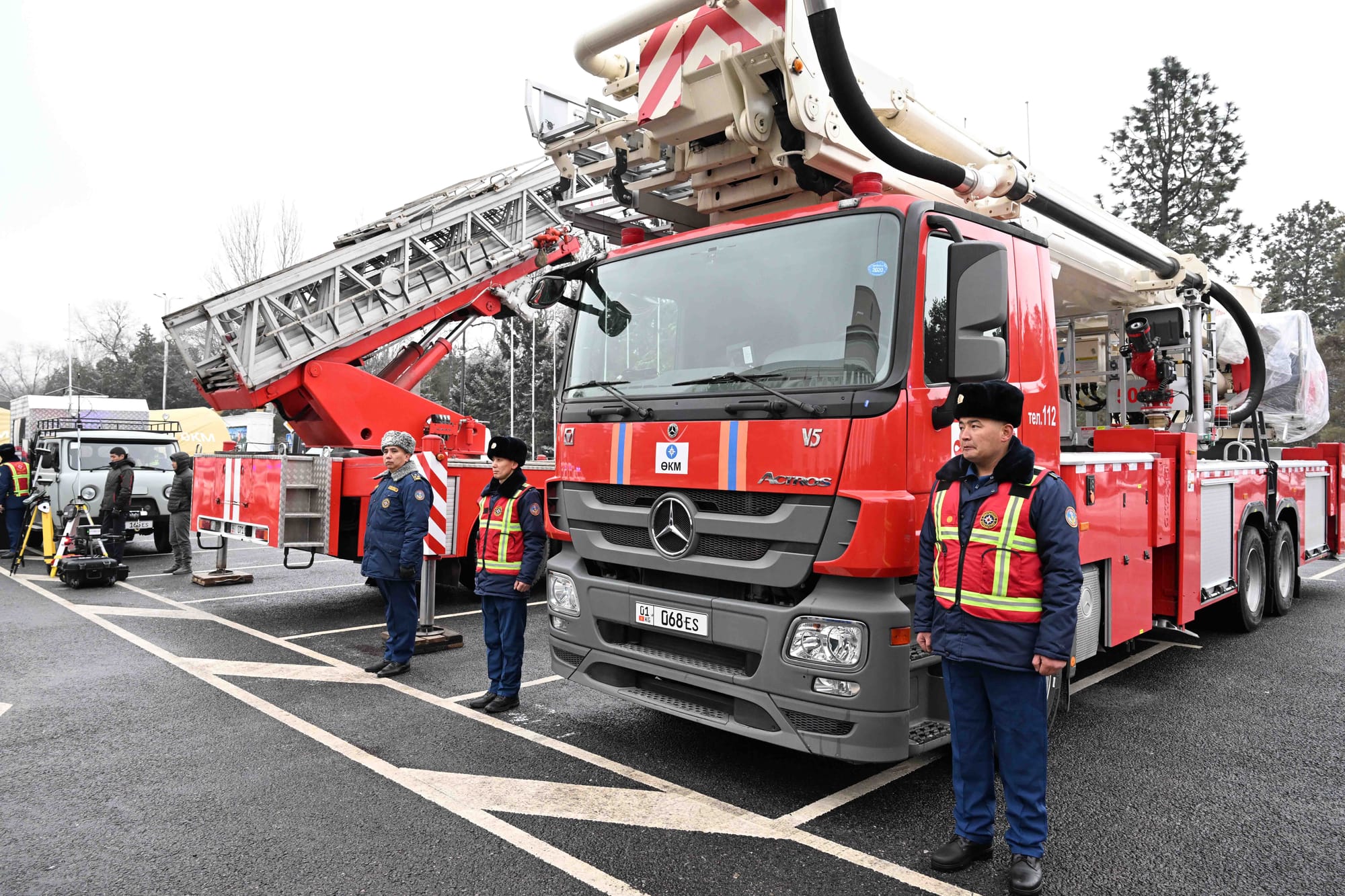 В церемонии принял участие глава Госкомитета нацбезопасности (ГКНБ) Камчыбек Ташиев. Он отметил, что за последние три года МЧС было передано более 700 современных машин, полностью обновлена техника аварийно-спасательной службы.