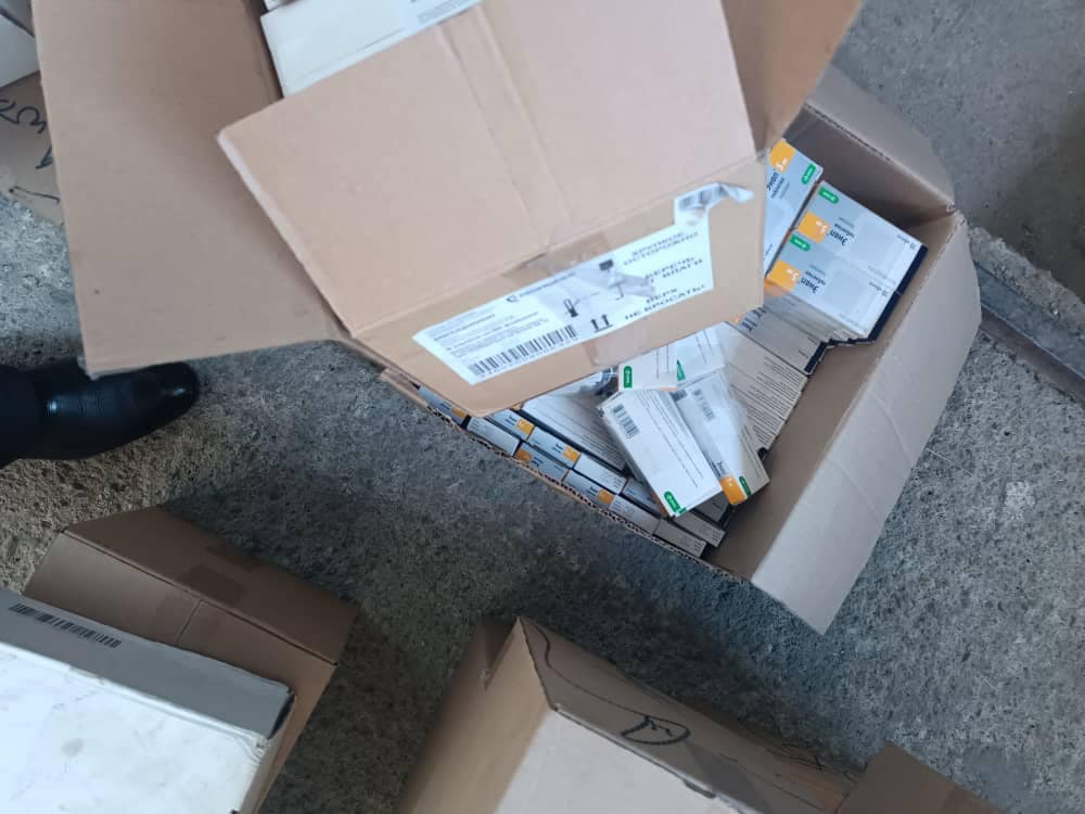В результате оперативно-розыскных мероприятий установлено, что контрабандные лекарства хранились по двум адресам. В ходе обыска в доме М.М., 1959 года рождения, находящемся по улице Джупас в селе Кызыл-Кыштак Кара-Суйского района, было изъято 4 тысячи единиц «Ампициллина», 3.6 тысячи единиц «Эланалаприлла», 100 единиц «Семакса» и 300 единиц мази «Рензилбензата».