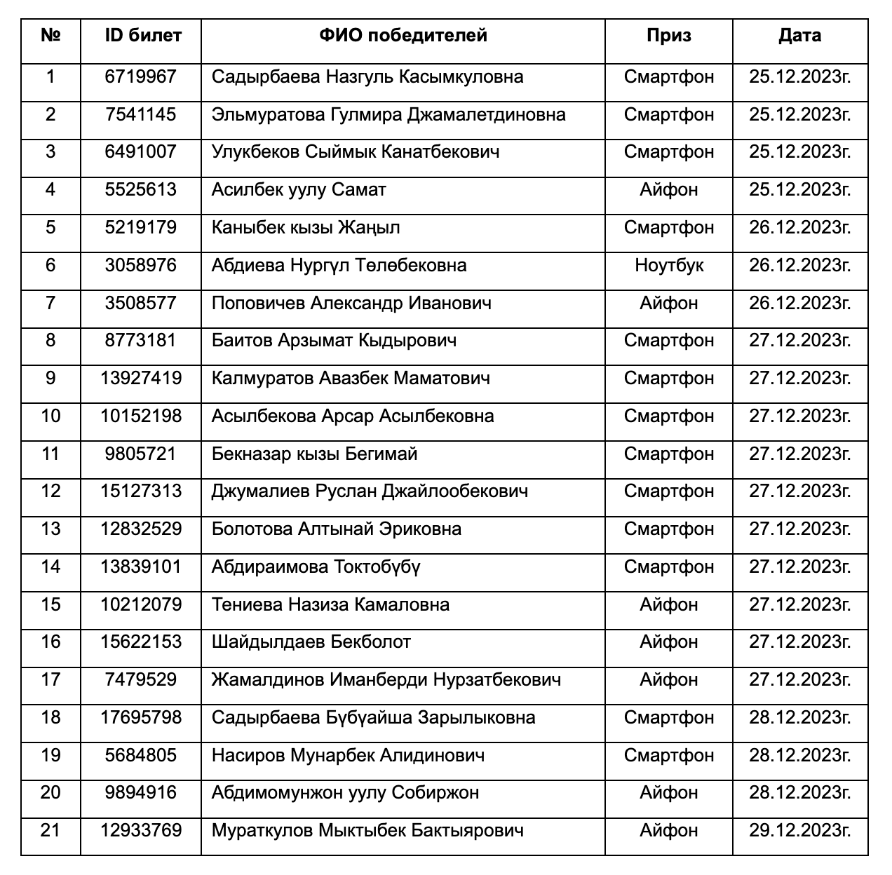 Напомним, что второй этап розыгрыша лотереи проходил с 25 по 30 декабря 2023 года. В результате были определены 1244 победителя, которые получили 10 квартир, 11 электромобилей и четыре путевки в Дубай на двоих.